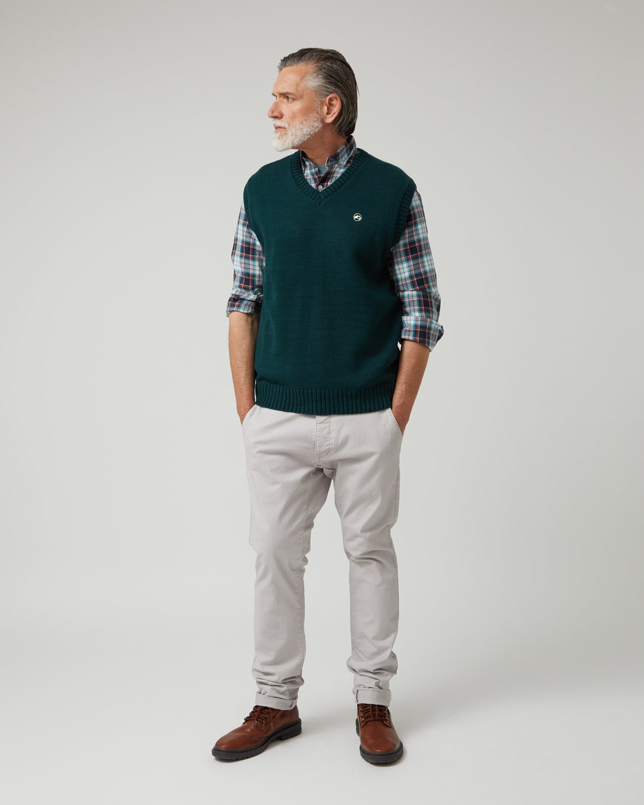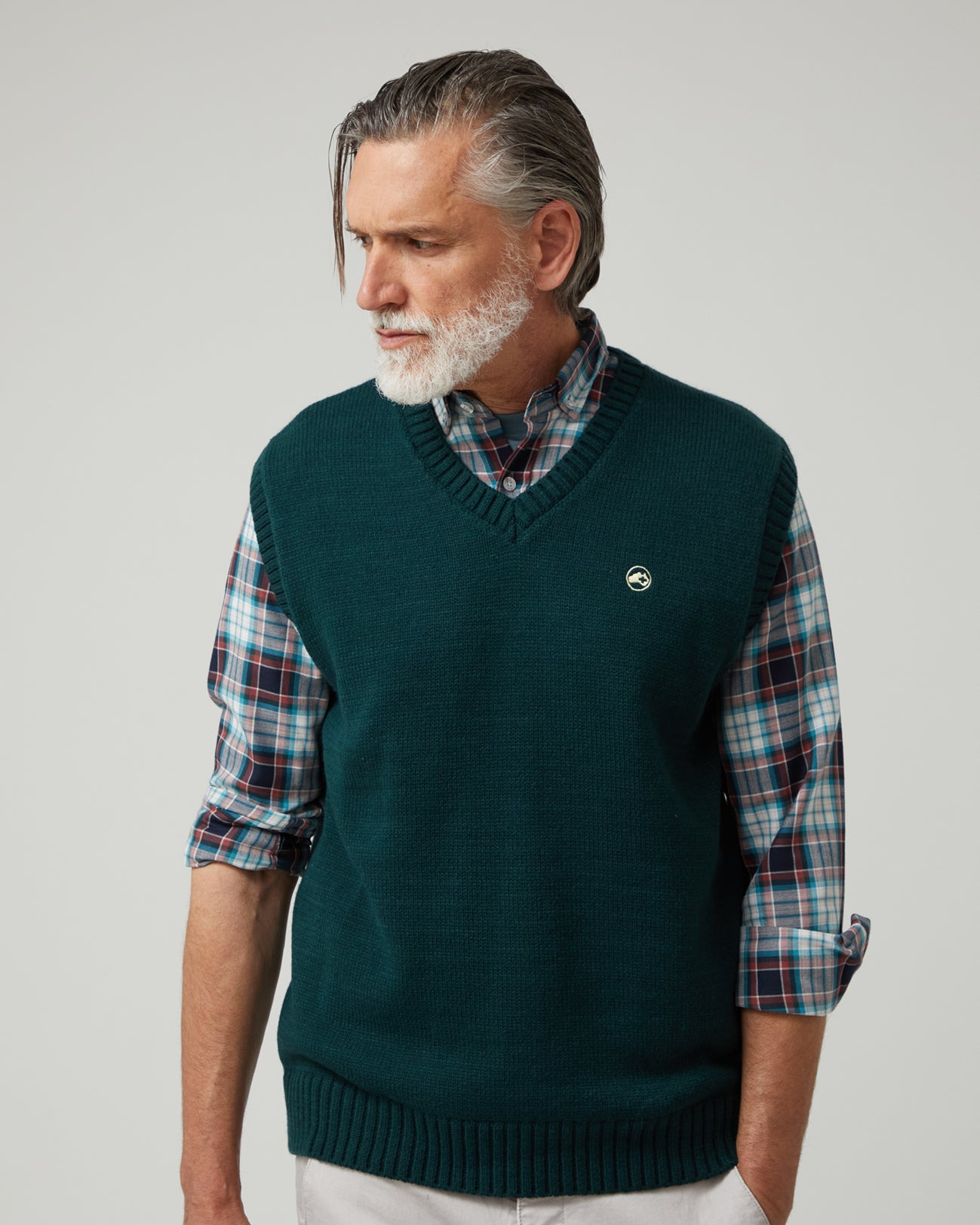 El Chaleco Punto Verde Oscuro de Altonadock es una prenda versátil pensada para sumar capas con estilo. Su diseño de cuello en pico aporta un aire clásico y atemporal, ideal para llevar sobre camisas o camisetas y adaptarse tanto a looks más formales como a combinaciones casuales. El tono verde oscuro, sobrio y elegante, lo convierte en una opción fácil de integrar en cualquier armario de temporada.