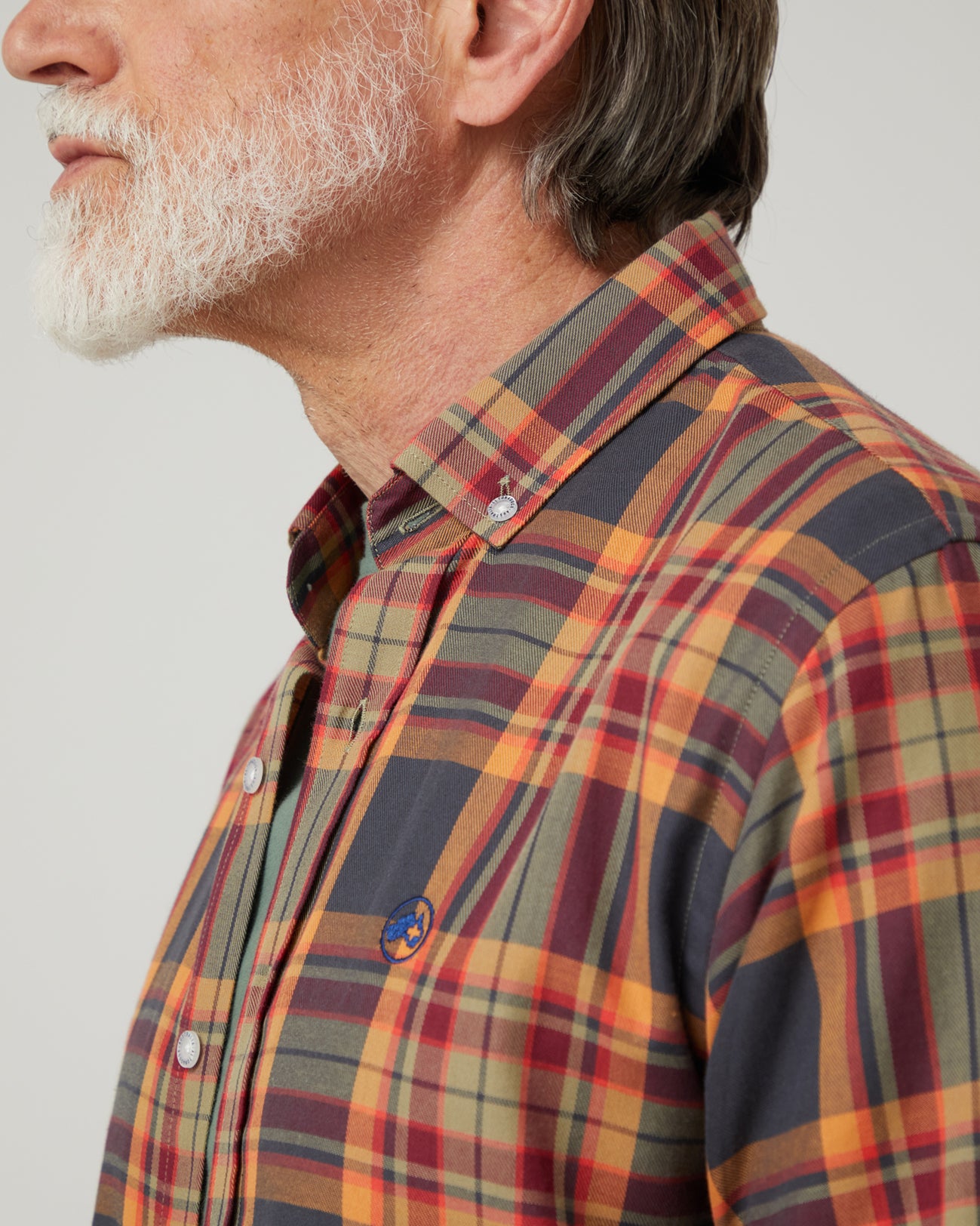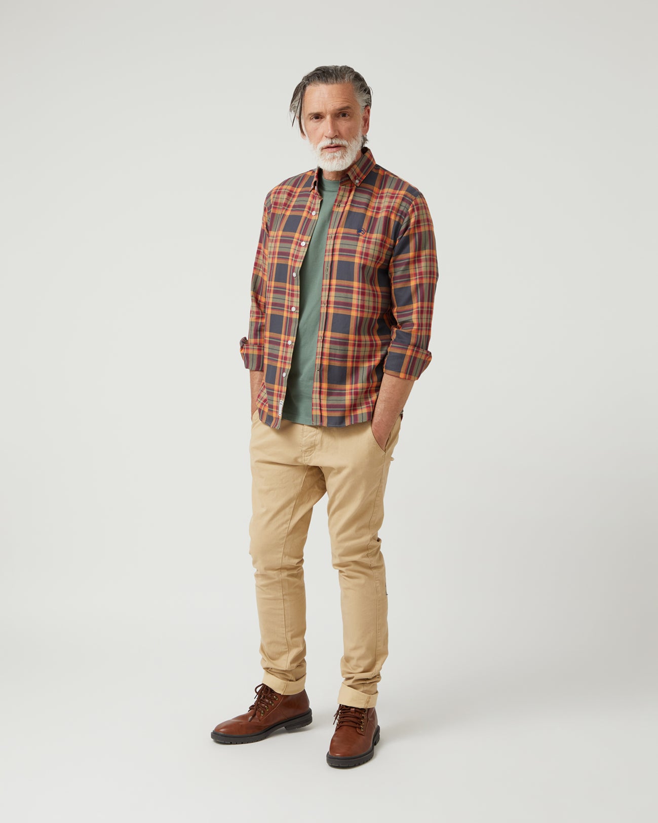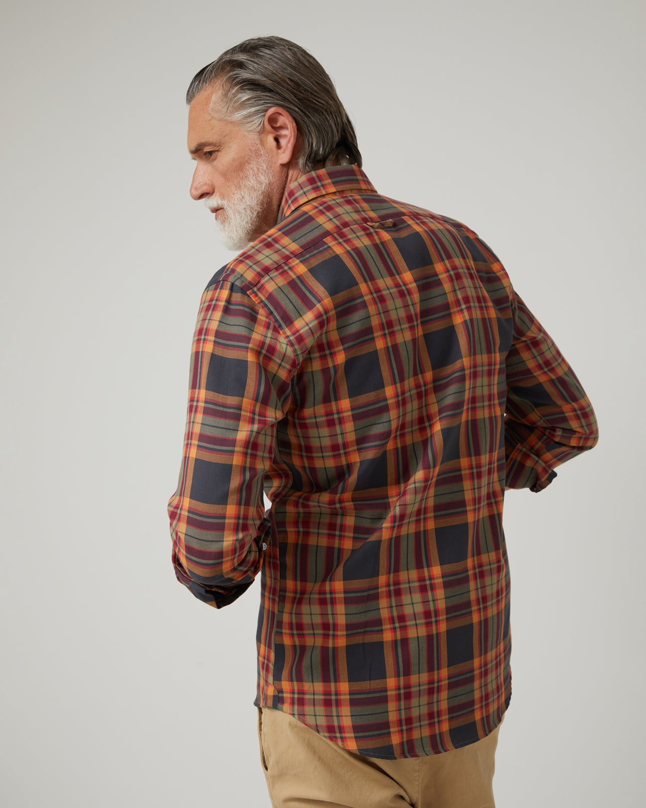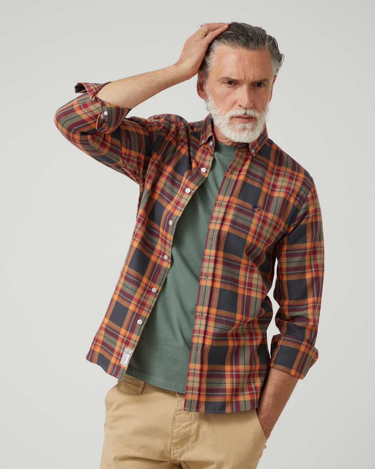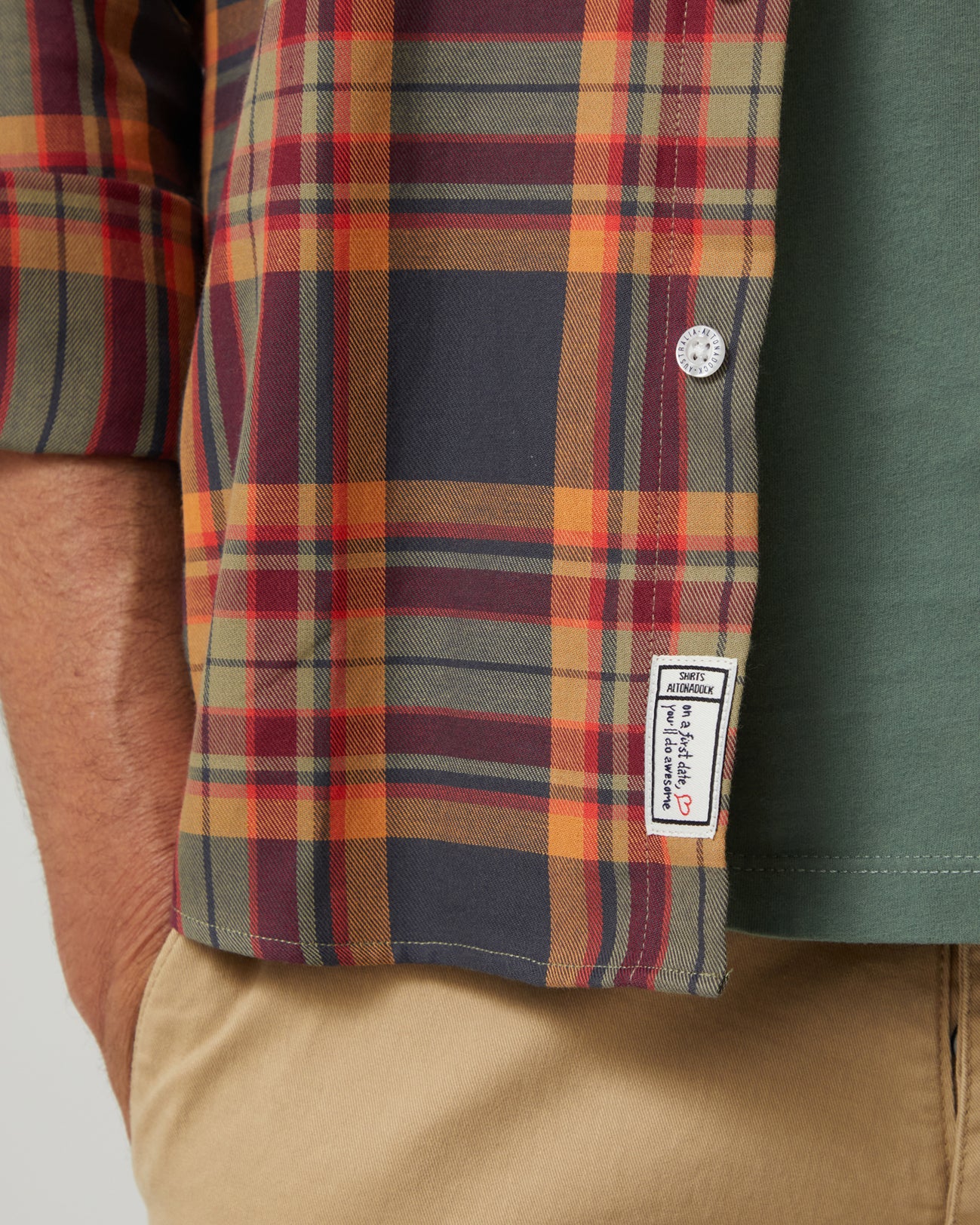 La Camisa Ember de Altonadock destaca por su personalidad y estilo atemporal, convirtiéndose en una pieza clave de la colección. Confeccionada en 100 % algodón, ofrece suavidad, transpirabilidad y comodidad durante todo el día. Su diseño de cuadros en tonos cálidos —naranja, burdeos, amarillo y verde— aporta un aire versátil y auténtico, perfecto tanto para looks urbanos como para un estilo más casual. El corte slim fit realza la silueta sin renunciar a la comodidad, mientras que los detalles característicos de la firma refuerzan su carácter distintivo.