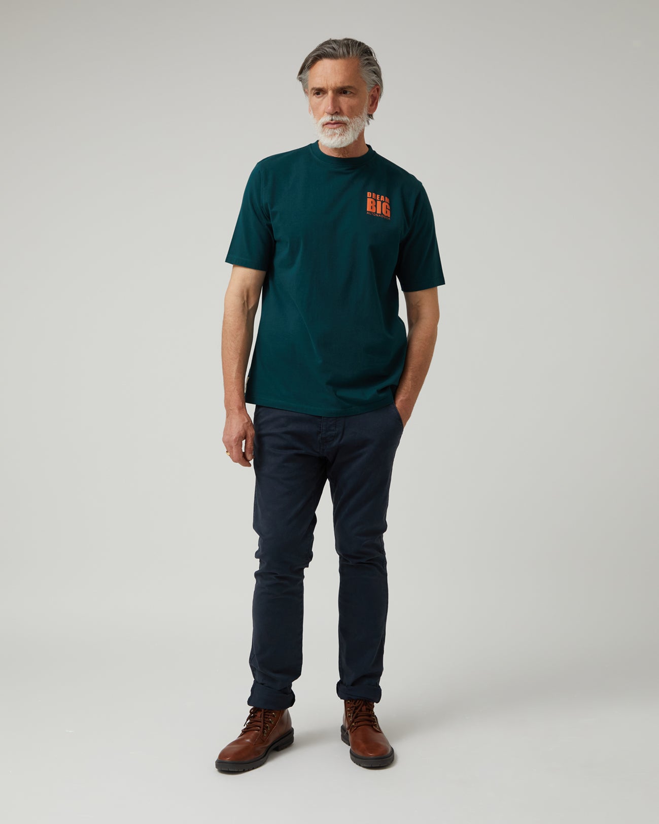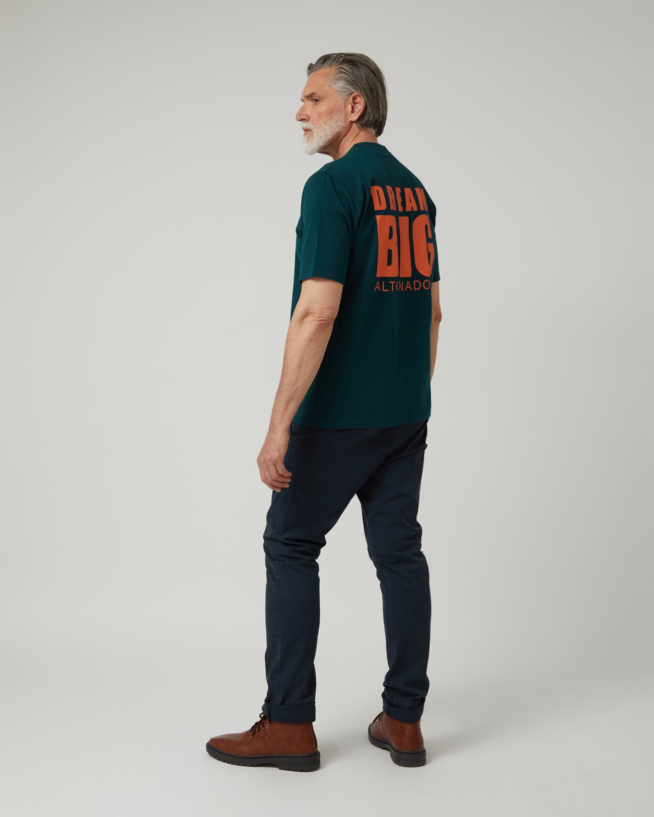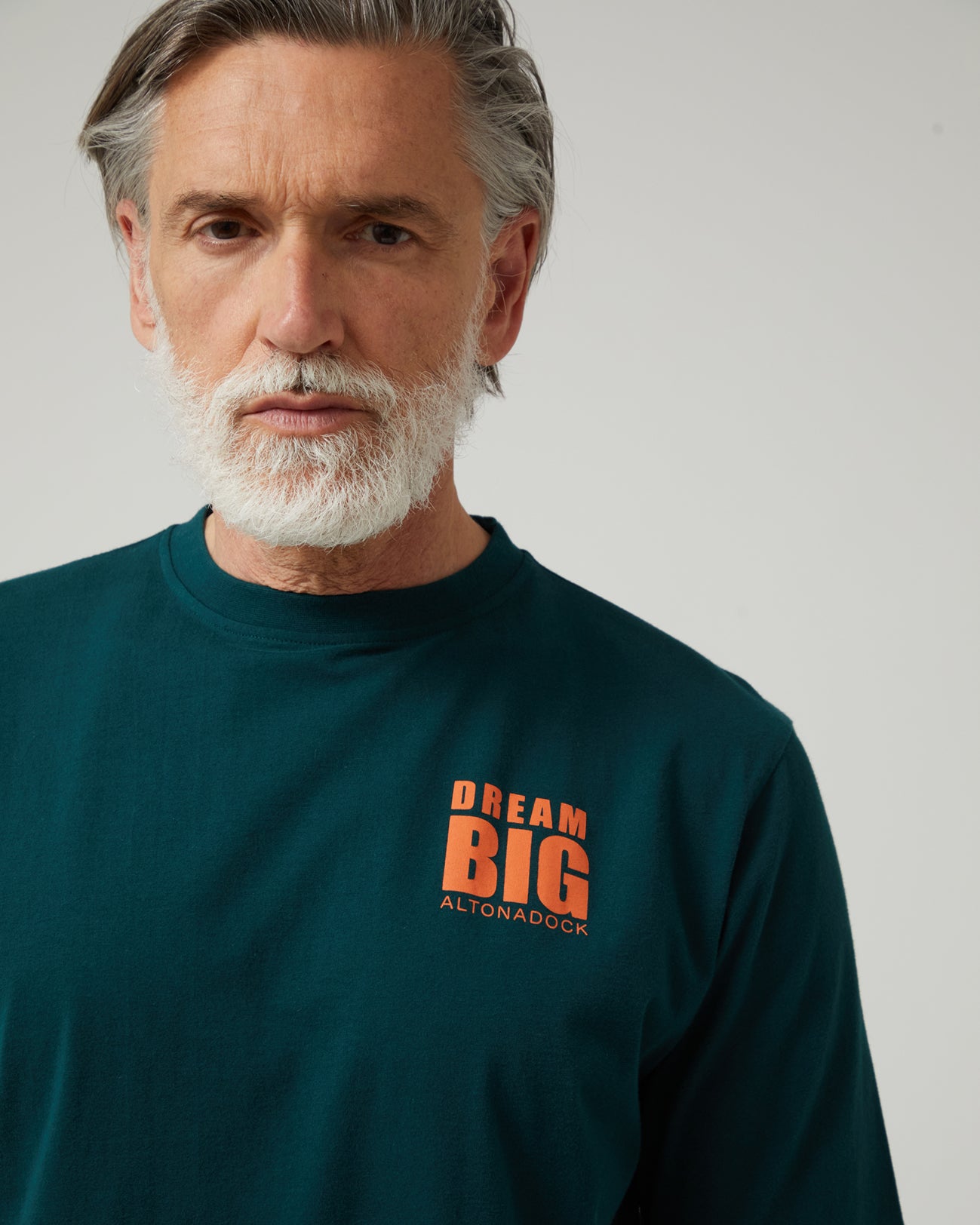 Atrévete a pensar a lo grande con la Camiseta Dream Big Verde Océano de Altonadock. Fabricada en 100% algodón, esta prenda ofrece una combinación perfecta de confort, ligereza y estilo. Su diseño se centra en el mensaje "Dream Big", serigrafiado en el pecho con letras naranjas que aportan un contraste vibrante y lleno de energía. Una declaración de intenciones para quienes no se conforman, perfecta para looks relajados con actitud. Llévala con jeans o pantalones cargo para un estilo urbano con personalidad.
