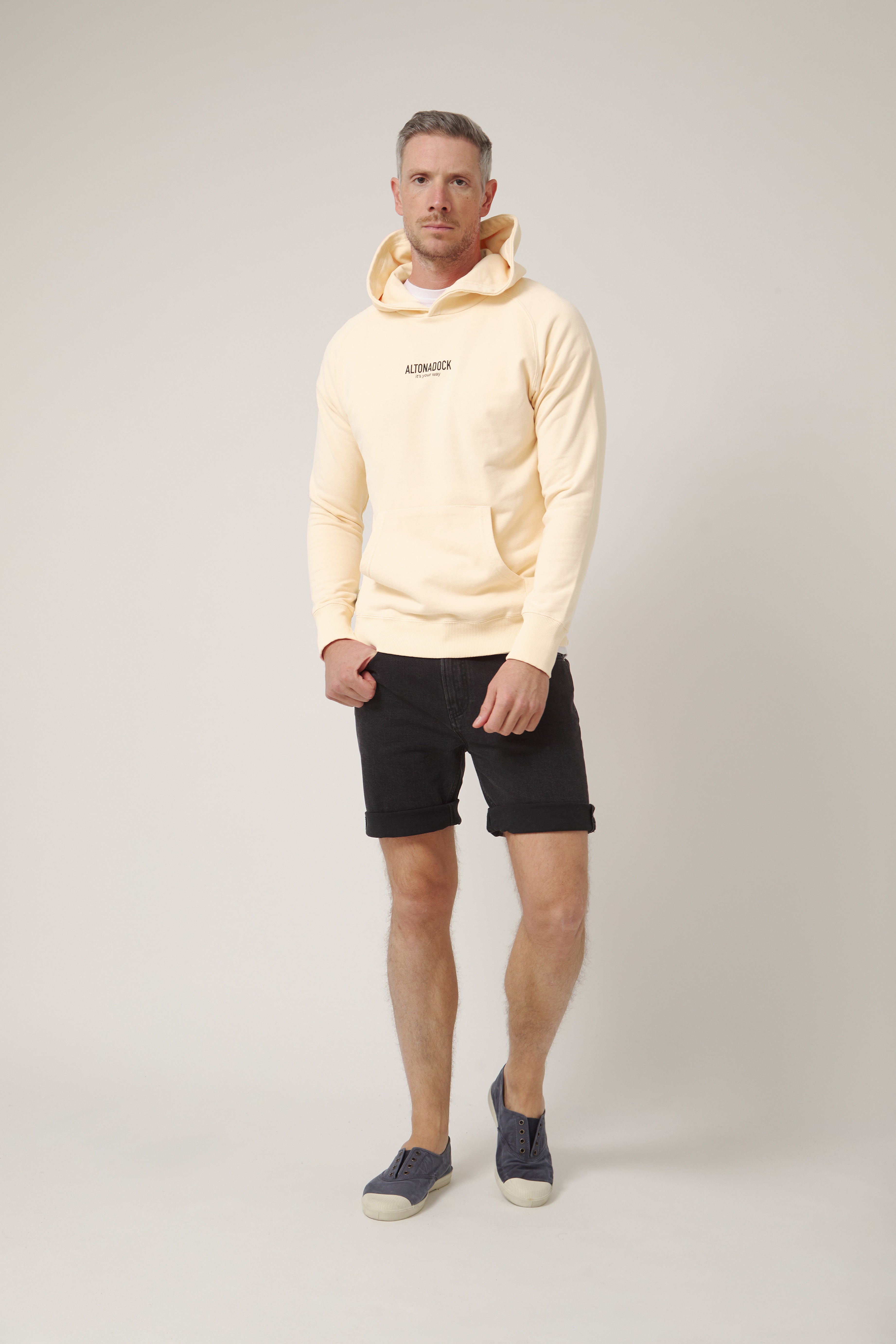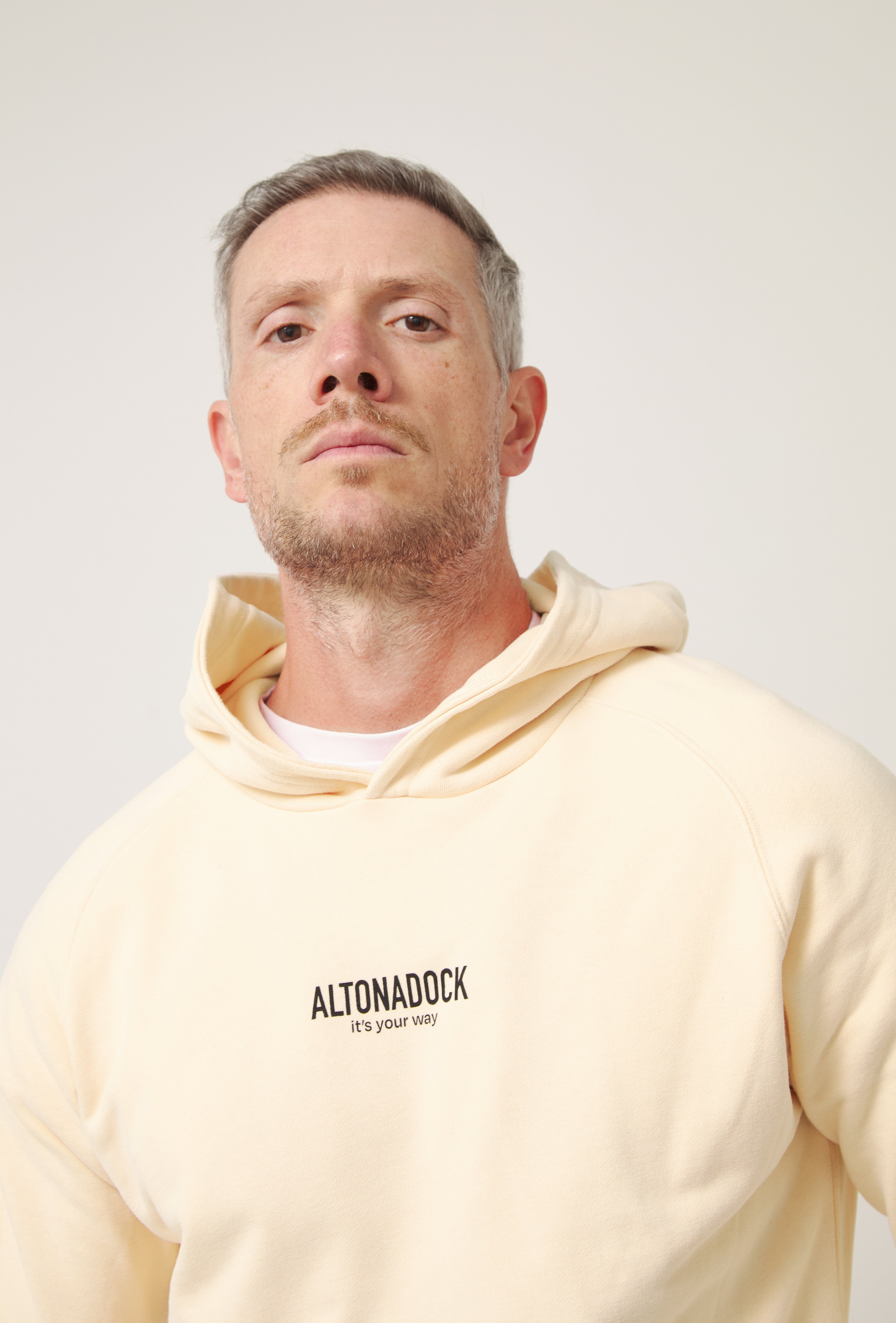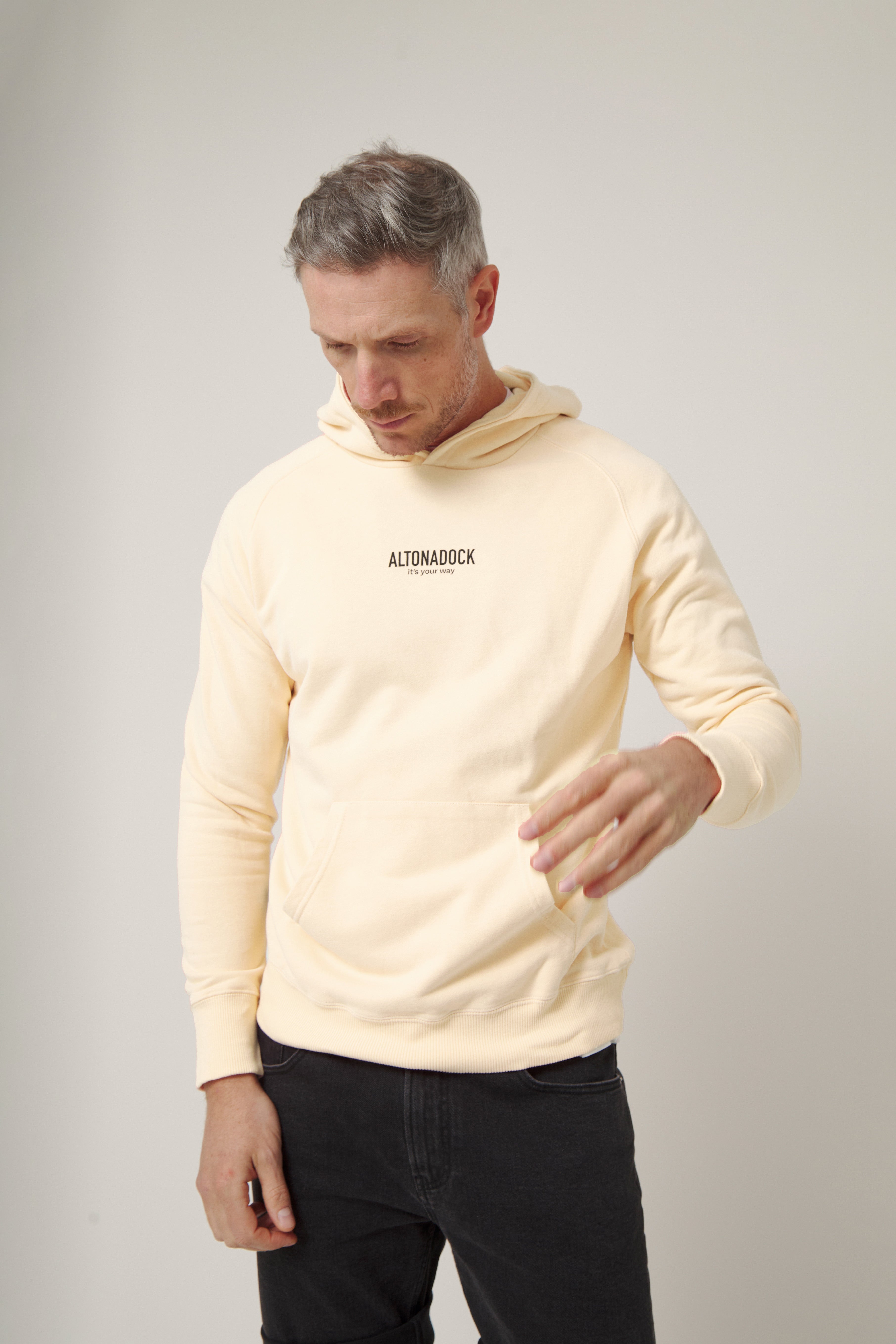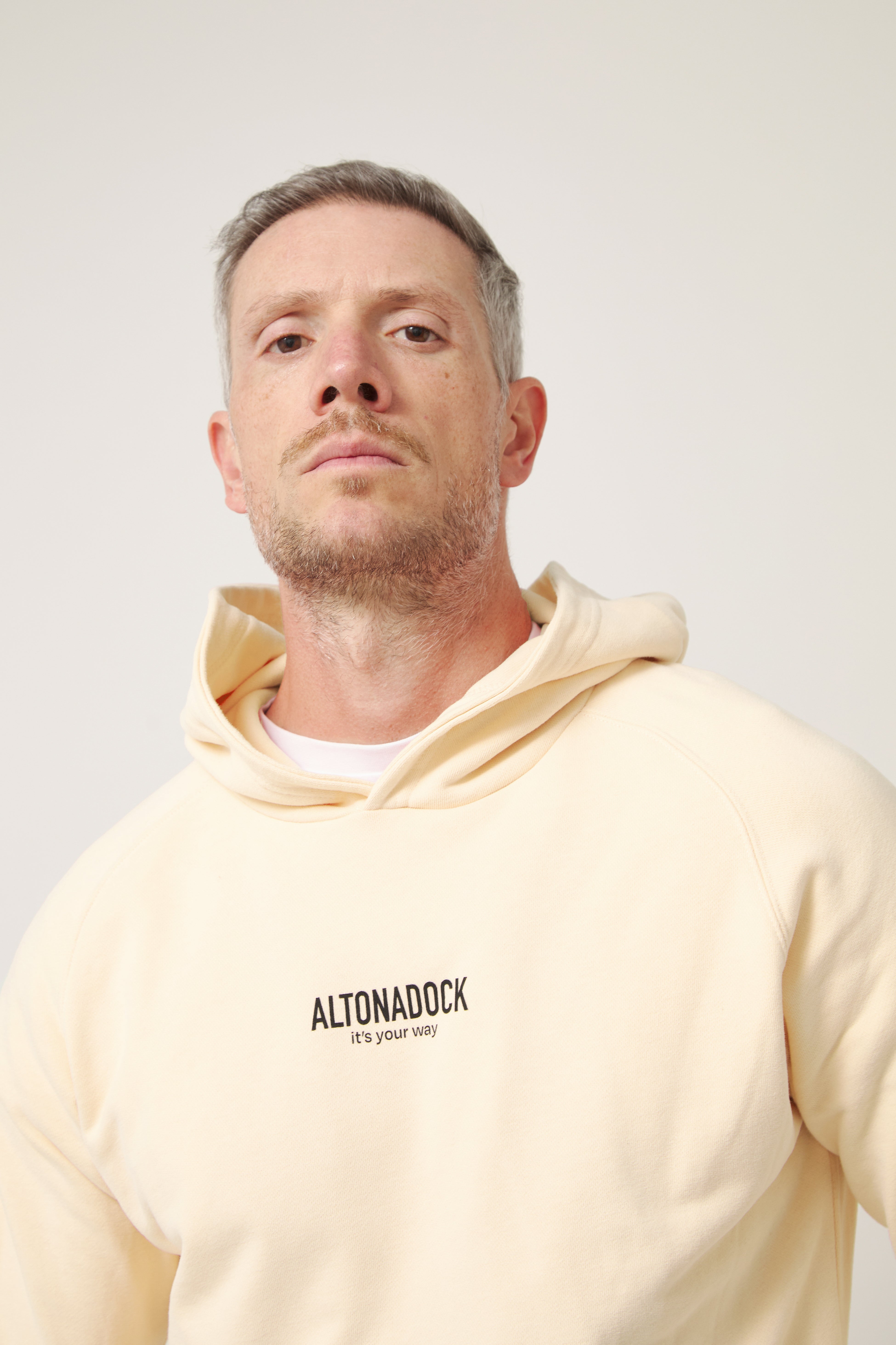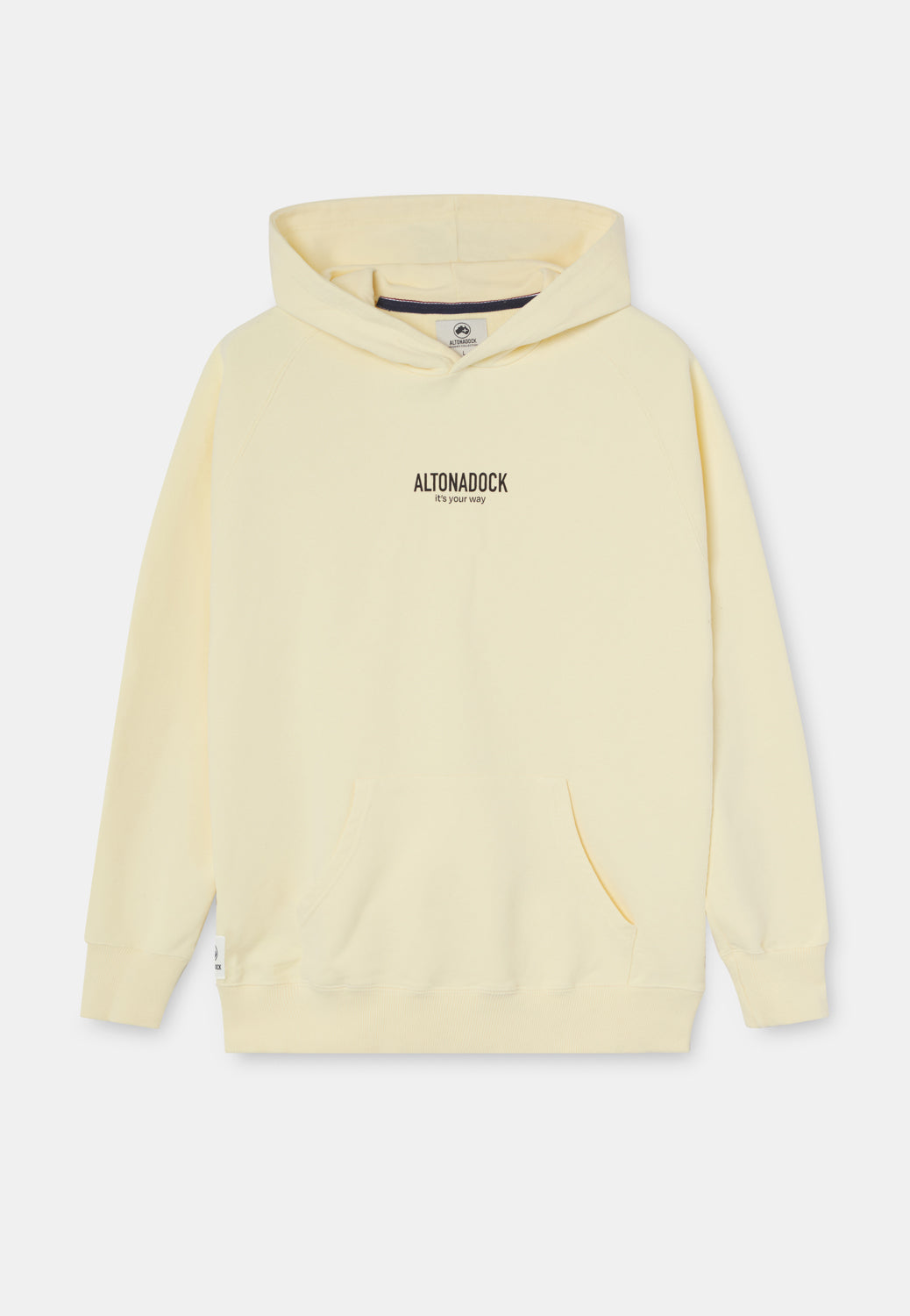 Sudadera con capucha en color vainilla con detalle tipográfico “Altonadock, it’s your way” en el pecho, una prenda que transmite sencillez, actitud y libertad. Confeccionada en tejido de algodón de alta calidad, ofrece un tacto suave y una comodidad pensada para el uso diario. Su diseño limpio y minimalista se equilibra con un mensaje discreto pero significativo, aportando personalidad sin perder versatilidad. Una sudadera atemporal, perfecta para looks relajados y para acompañarte en cualquier plan.