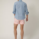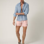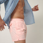 Luce un estilo limpio y veraniego con nuestro bañador liso para hombre con detalle de ancla en la parte trasera. Confeccionado en tejido 100% poliéster de secado ultrarrápido, este diseño de corte corto y suelto garantiza comodidad y libertad de movimiento. Su tono rosa suave aporta luminosidad y frescura, mientras que el bolsillo trasero con ancla distintiva refuerza su esencia náutica y atemporal, perfecto para disfrutar de la playa o la piscina con estilo.