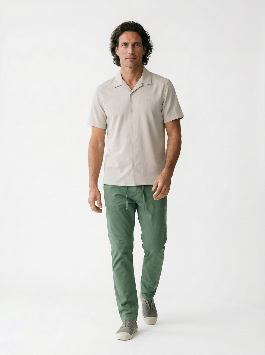 Camisa de manga corta en color beige, pensada para los días que empiezan sin plan y acaban tarde. Ligera, limpia y fácil de llevar, forma parte de una serie de esenciales de verano con el sello Altonadock.