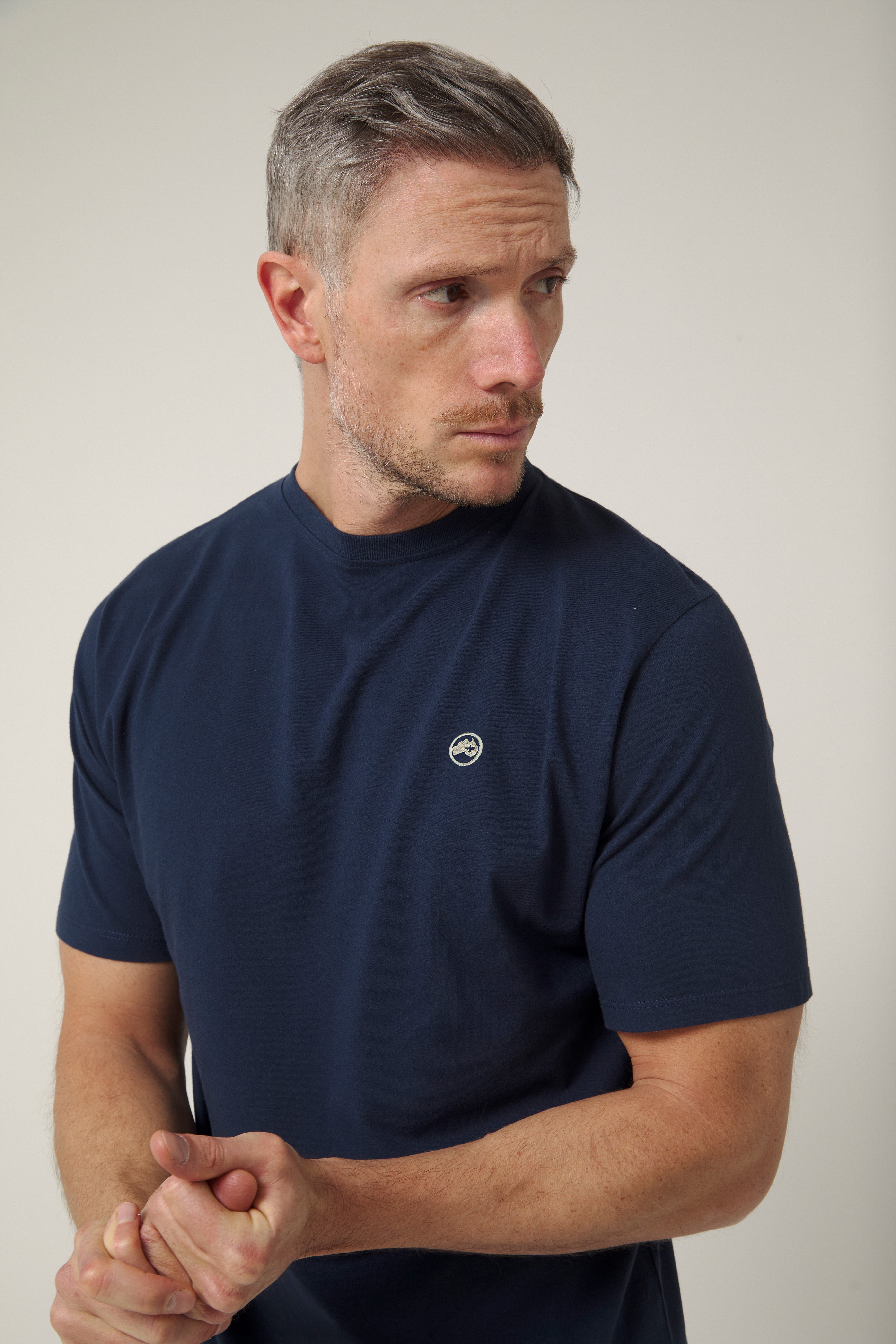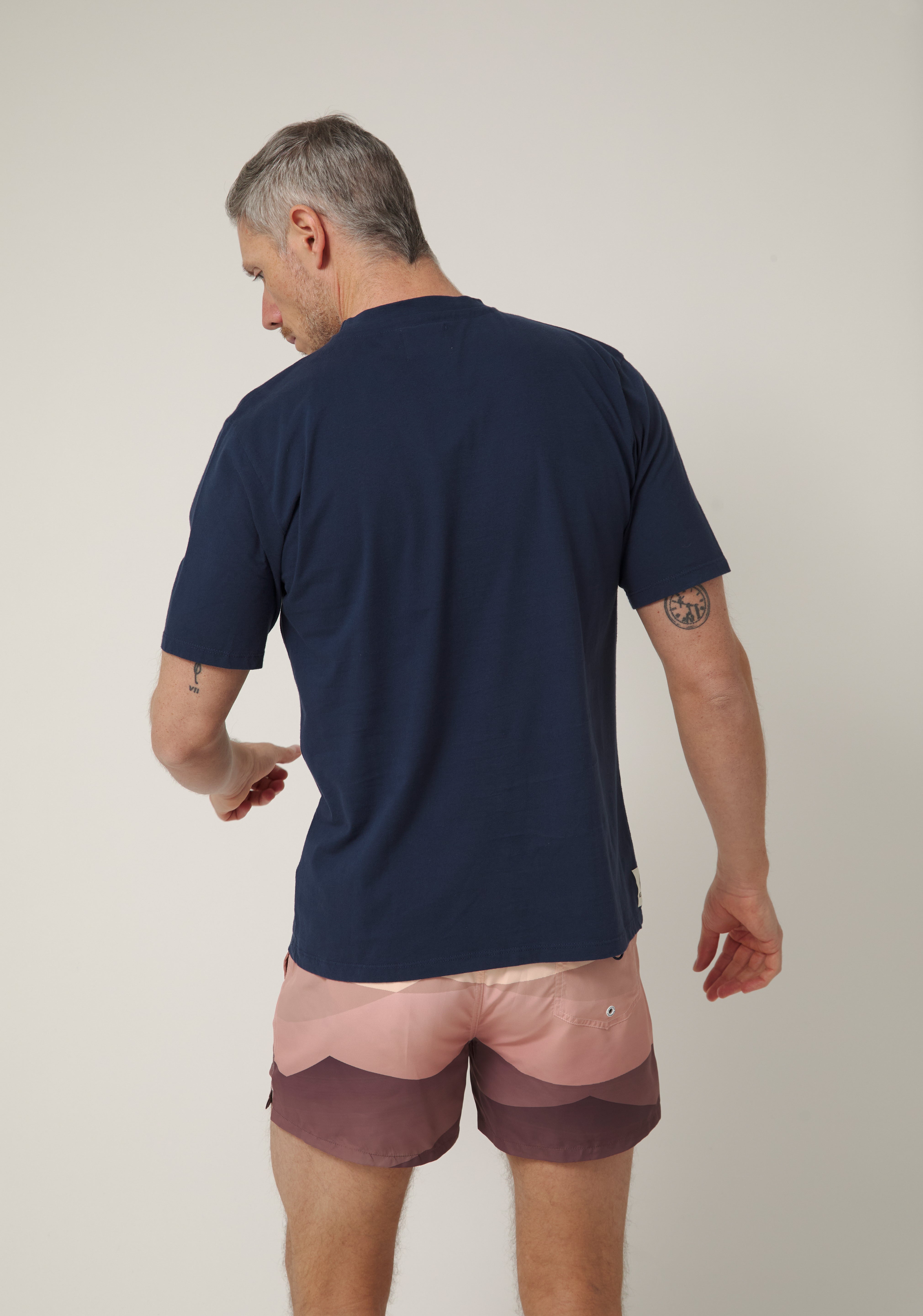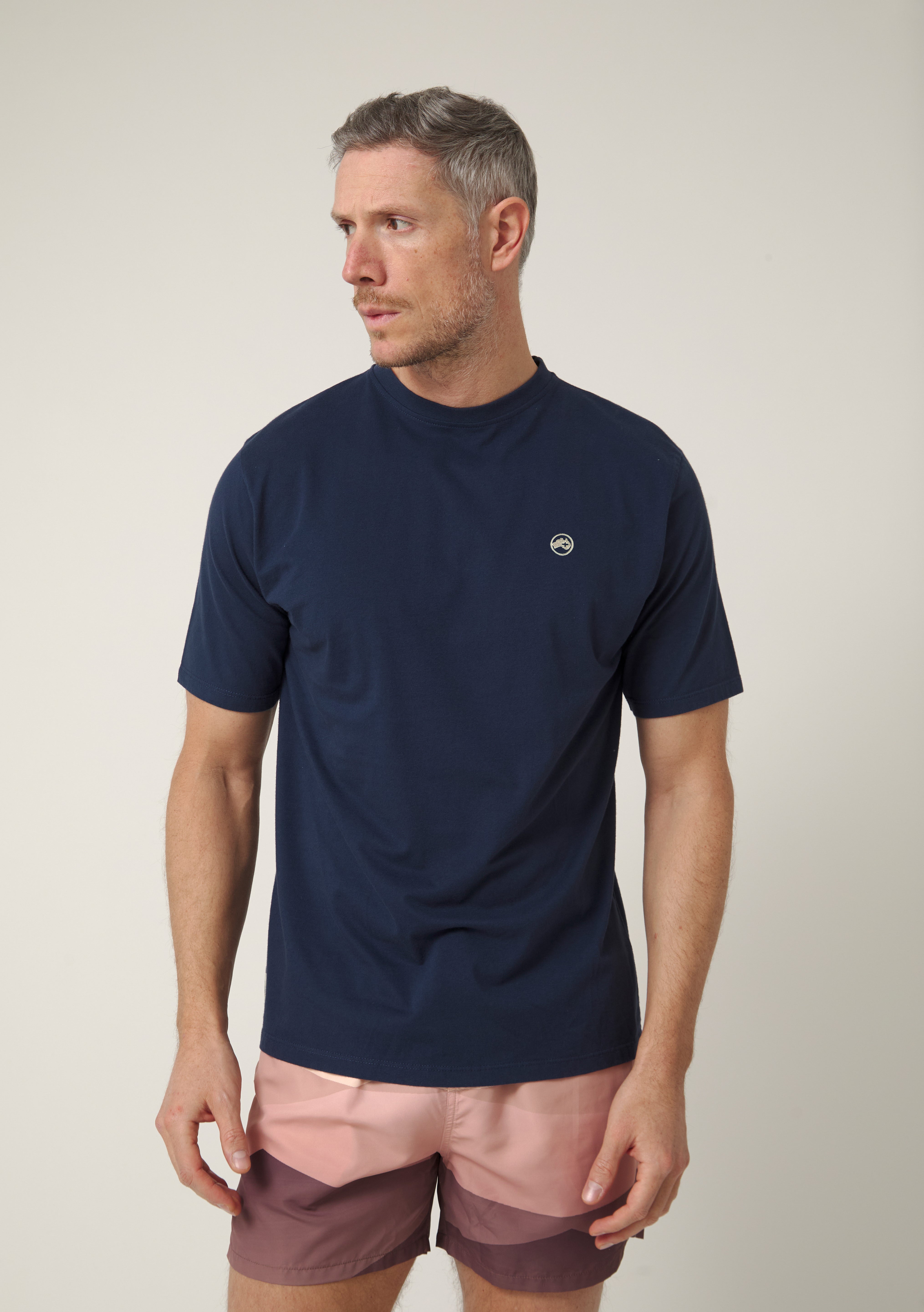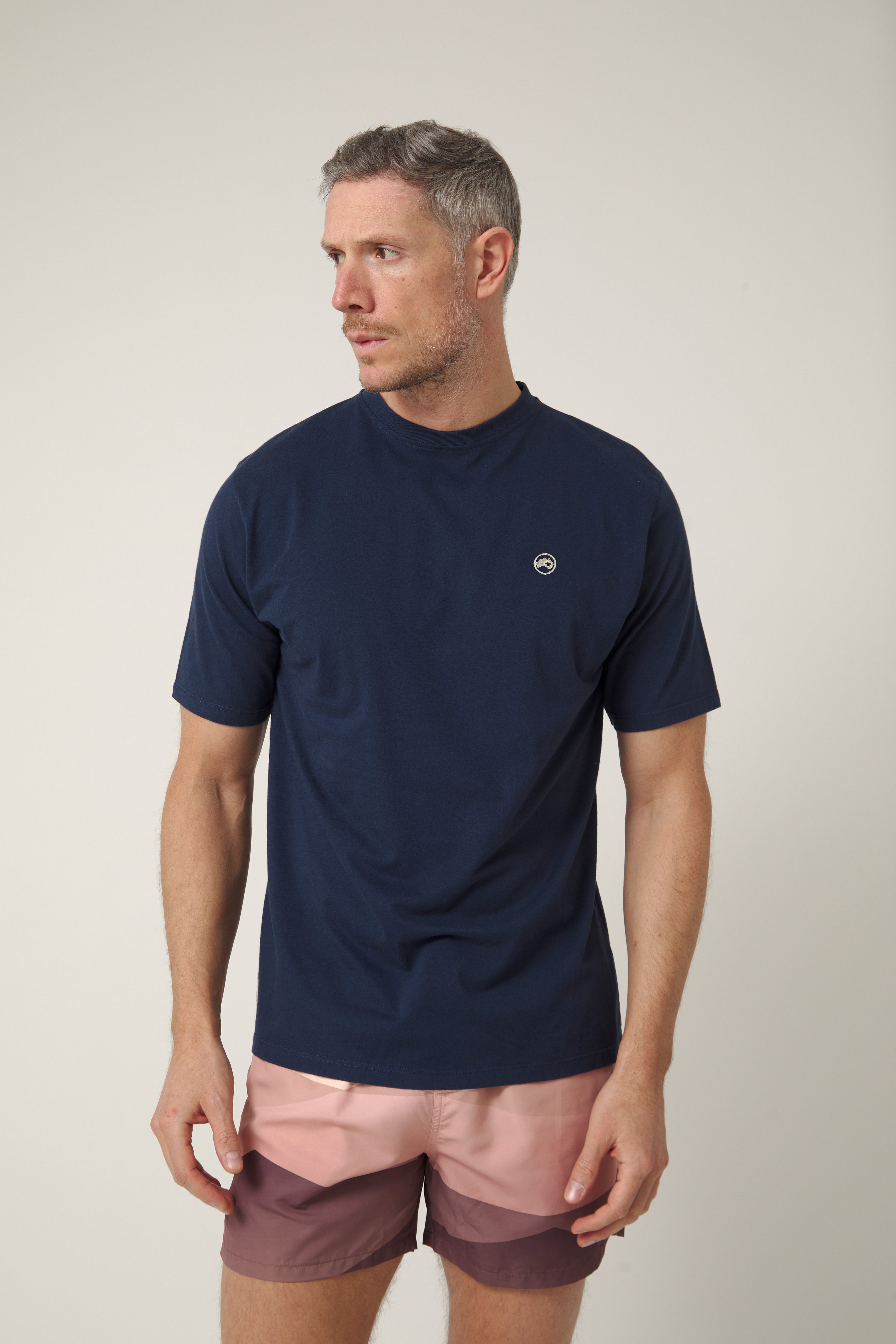 Camiseta de manga corta en azul marino profundo, inspirada en las noches del norte cuando el mar se funde con el horizonte. Un tono sobrio y versátil que transmite calma y profundidad.