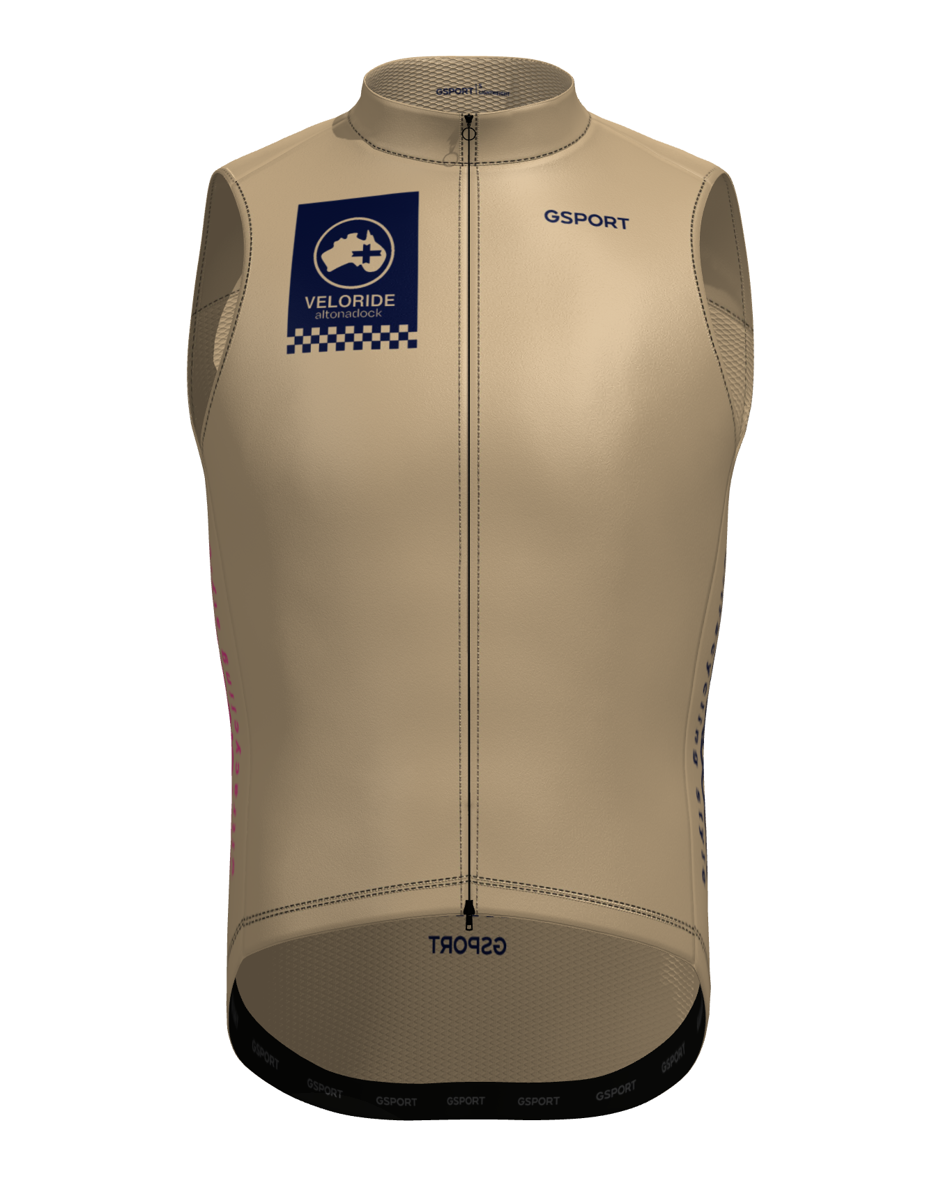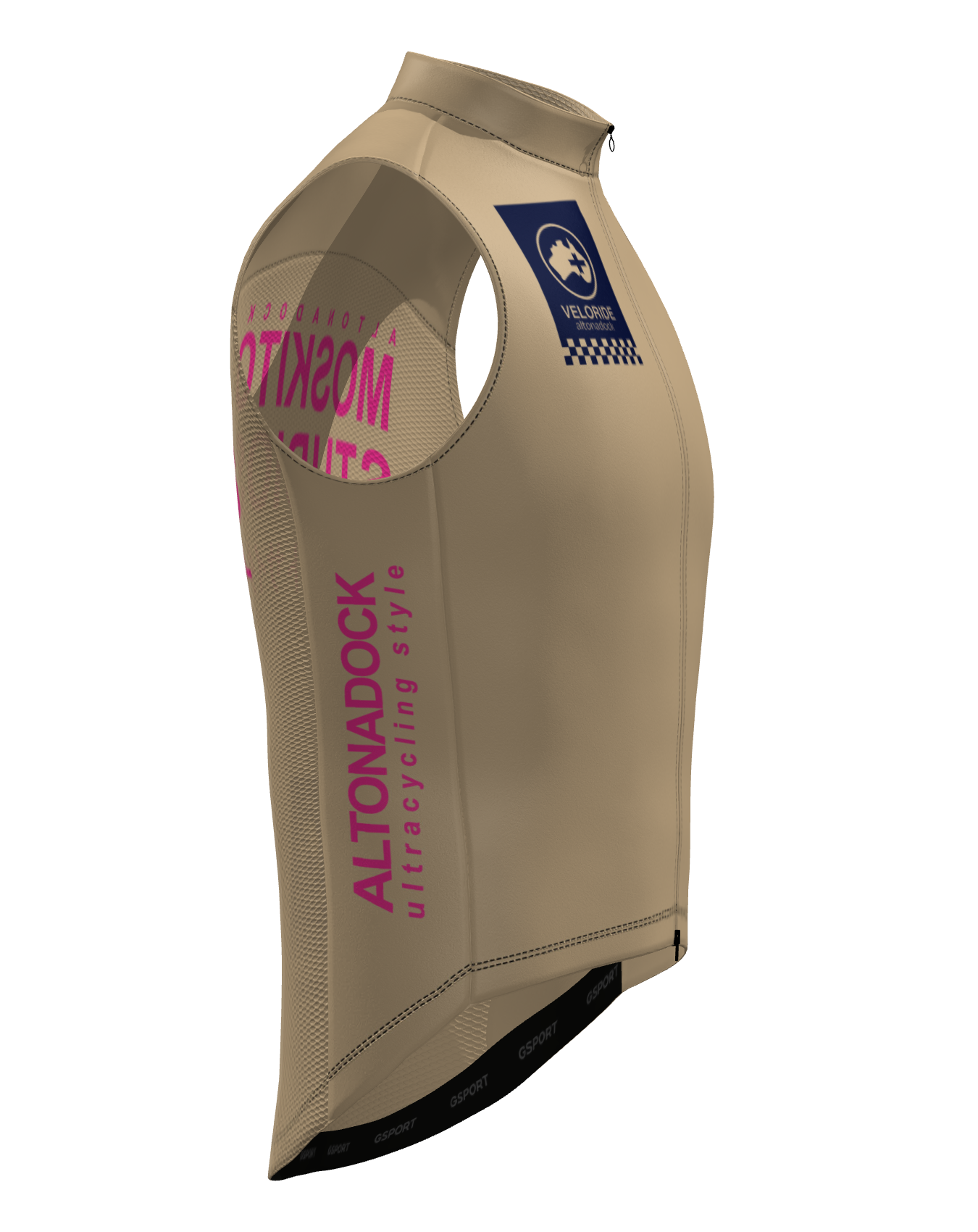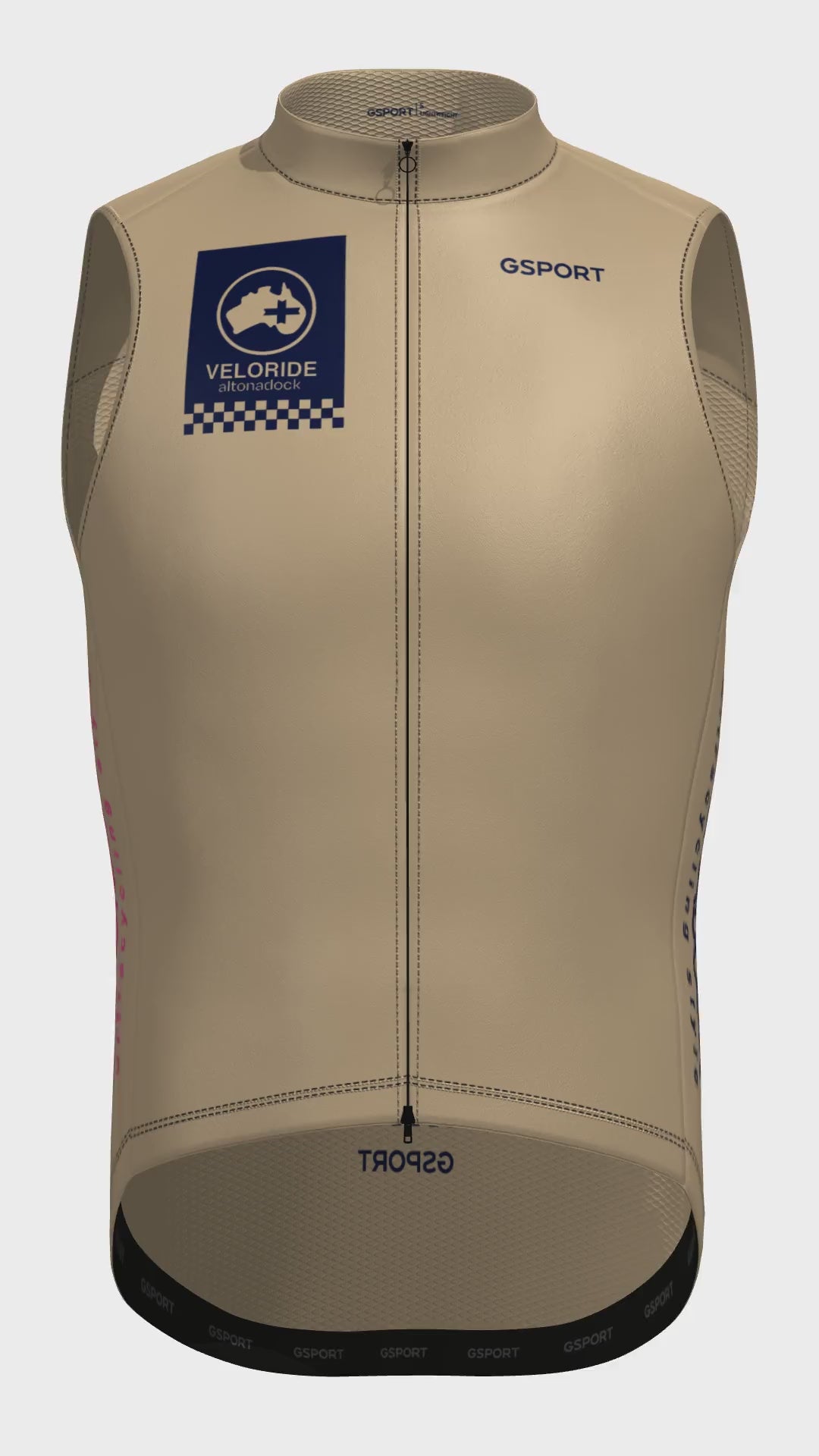 El Chaleco Veloride Altonadock es la capa perfecta para ciclistas que buscan protección contra el viento y la lluvia ligera sin comprometer la transpirabilidad. Con un diseño en tono arena, incorpora el logo Veloride altonadock en azul marino en la parte superior delantera y detalles gráficos laterales en contraste, aportando una estética racing limpia y distintiva alineada con la colección.