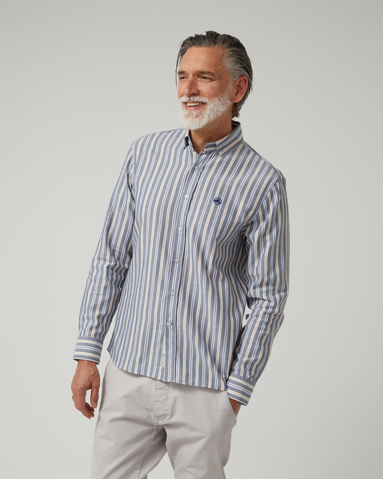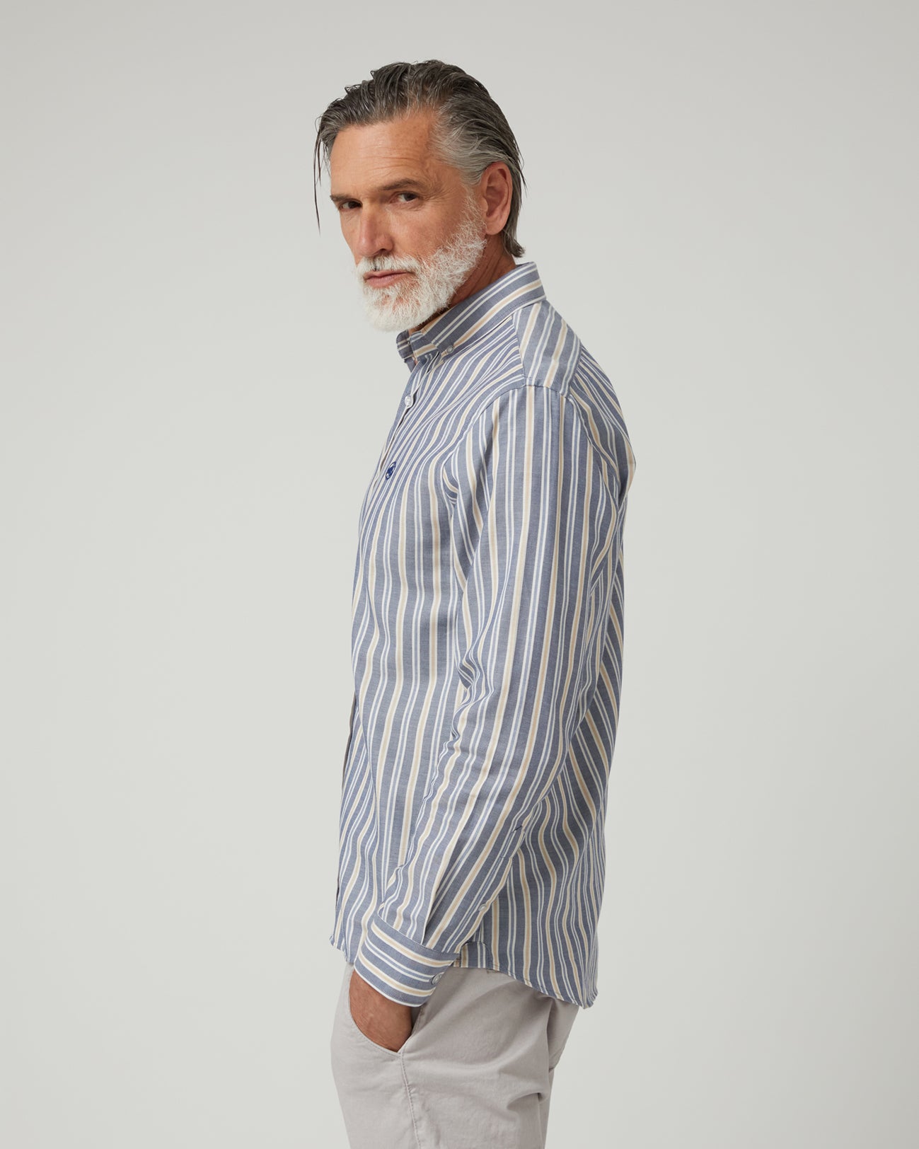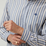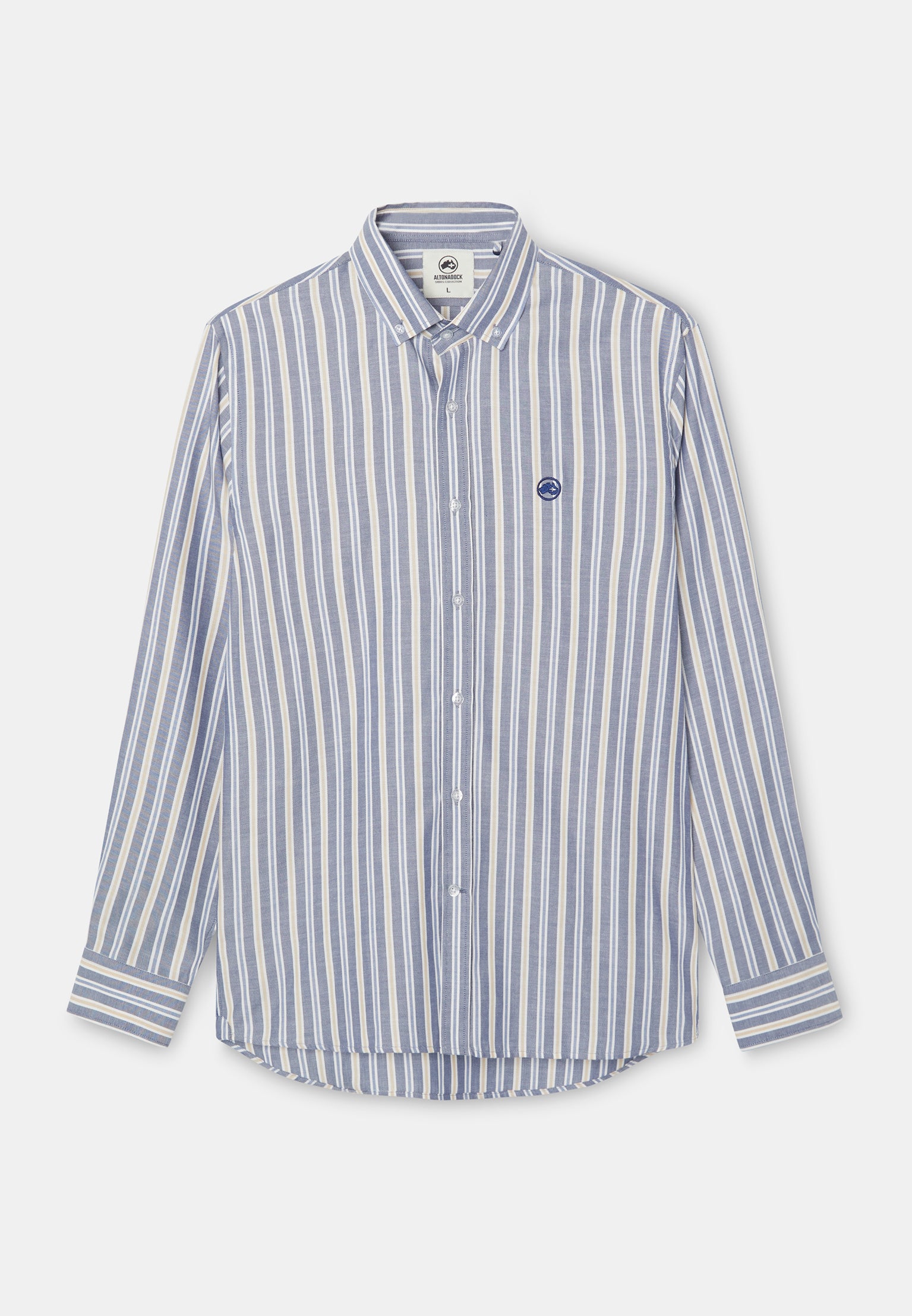 La Camisa Coastline de Altonadock combina frescura y sofisticación en una prenda versátil. Confeccionada en 100 % algodón, ofrece suavidad, transpirabilidad y comodidad durante todo el día. Su diseño presenta rayas verticales en diferentes tonos de azul con toques de beige y blanco, creando un estilo equilibrado y actual. Con corte slim fit, estiliza la silueta y aporta un aire moderno, mientras que los detalles exclusivos de la firma refuerzan su carácter distintivo.