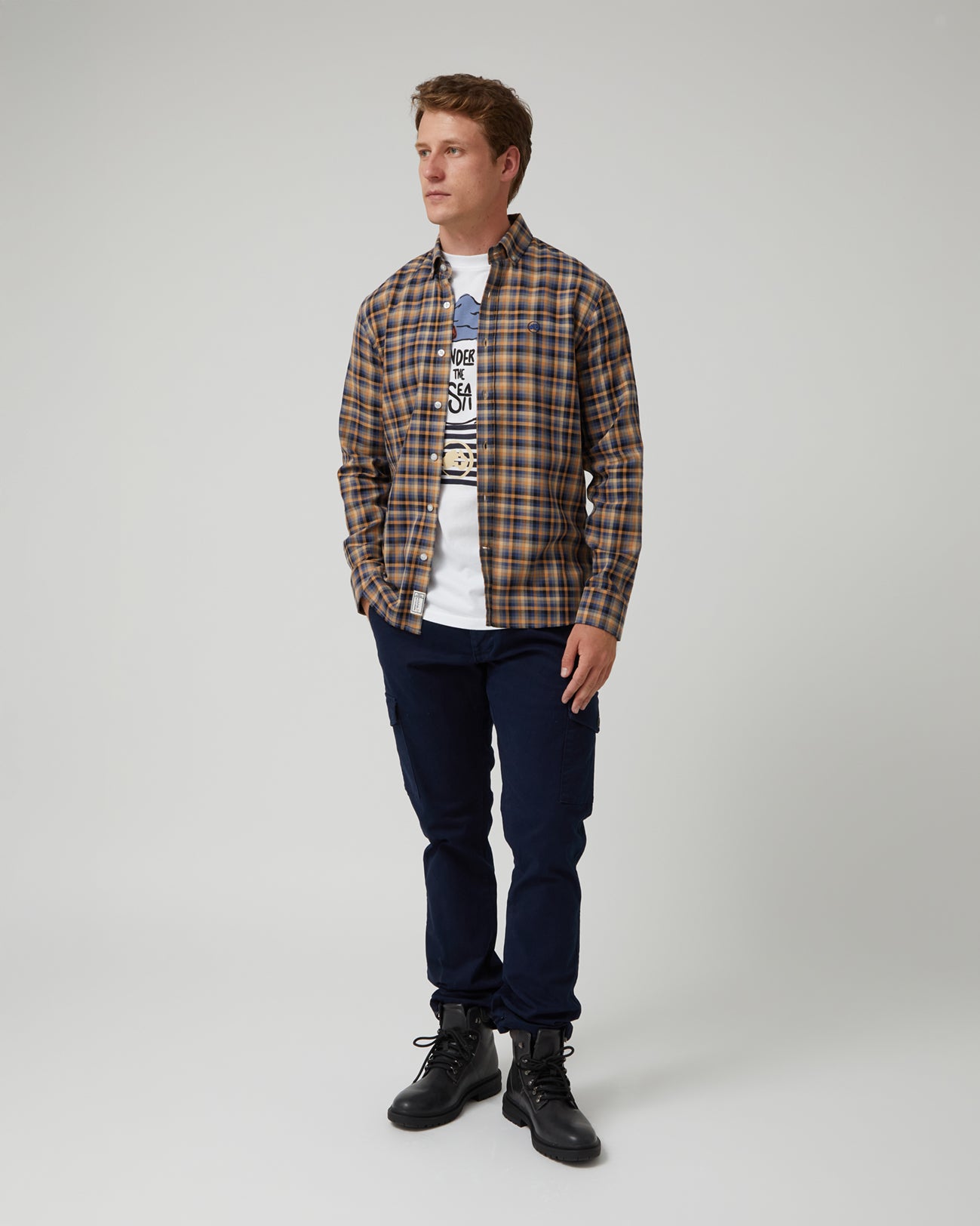 La Camisa Dakota de Altonadock aporta un estilo actual y versátil gracias a su diseño de cuadros pequeños en tonos grises, azules y naranjas sobre una base beige. Confeccionada en 100 % algodón, ofrece suavidad, transpirabilidad y comodidad durante todo el día. Su corte slim fit estiliza la silueta manteniendo un aire moderno y casual, mientras que el logo bordado en azul añade un toque distintivo y elegante. Una prenda que combina fácilmente tanto en looks urbanos como en ocasiones más relajadas.
