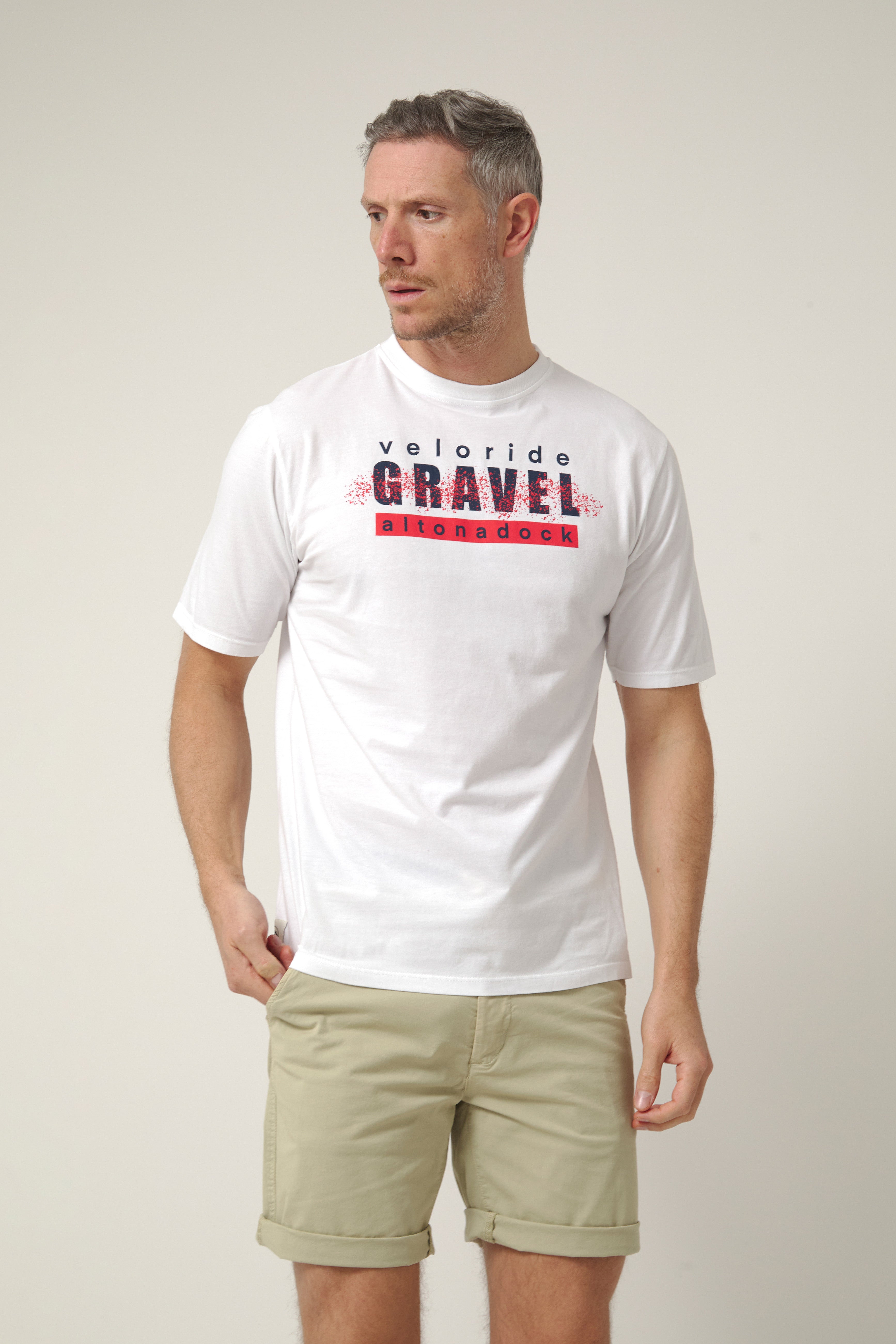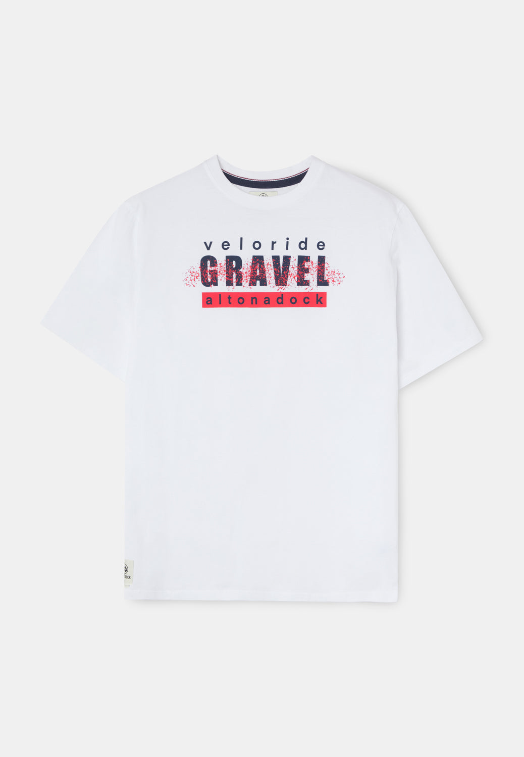 Camiseta blanca de manga corta con gráfico frontal “Veloride Gravel Altonadock”, una prenda que conecta con el espíritu del movimiento, la aventura y los caminos sin asfaltar. Confeccionada en algodón de alta calidad, ofrece un tacto suave, fresco y una comodidad ideal para el uso diario. Su diseño limpio se equilibra con una serigrafía con carácter y textura, aportando personalidad sin perder versatilidad. Una camiseta pensada para acompañarte dentro y fuera de la ruta, fiel al ADN más auténtico de Altonadock.