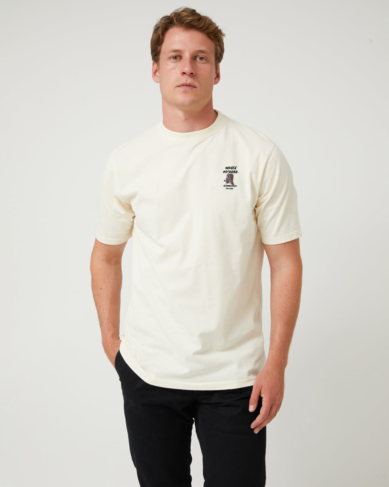 La Camiseta No Risk No Story Crudo de Altonadock es una declaración de actitud para quienes viven sin miedo a escribir su propia historia. Confeccionada en 100 % algodón, ofrece suavidad, transpirabilidad y comodidad para acompañarte en cualquier plan. El mensaje “No Risk No Story” aporta un toque inspirador y auténtico, ideal para quienes buscan prendas con carácter. Su tono crudo la convierte en una pieza versátil, fácil de combinar con cualquier estilo, desde el más casual al más cuidado.