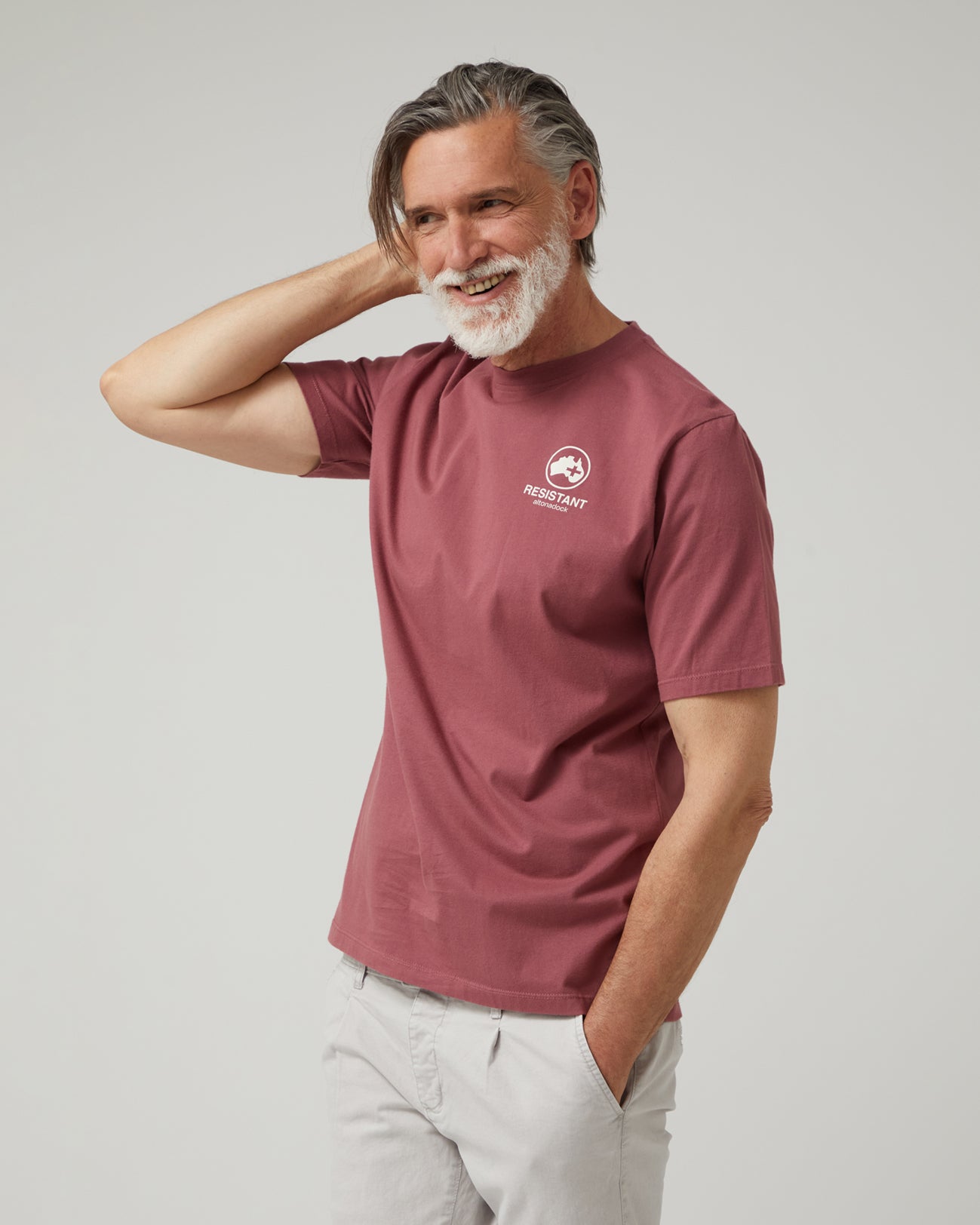Camiseta Resistant Granate, la esencia de Altonadock, en su forma más pura. Está confeccionada en 100% algodón de alta calidad, ofreciendo una sensación suave, fresca y cómoda durante todo el día. Su diseño minimalista presenta el logo de la firma serigrafiado en el pecho, un símbolo de identidad, carácter y estilo. Perfecta para quienes valoran la autenticidad y la conexión con nuestros valores: aventura, naturaleza y libertad. Combínala con tus vaqueros favoritos o úsala bajo una sobrecamisa para un look limpio y atemporal.