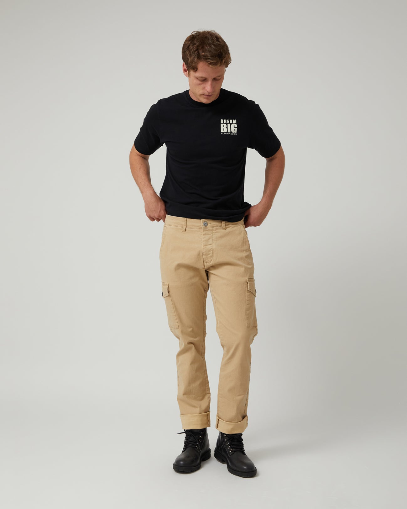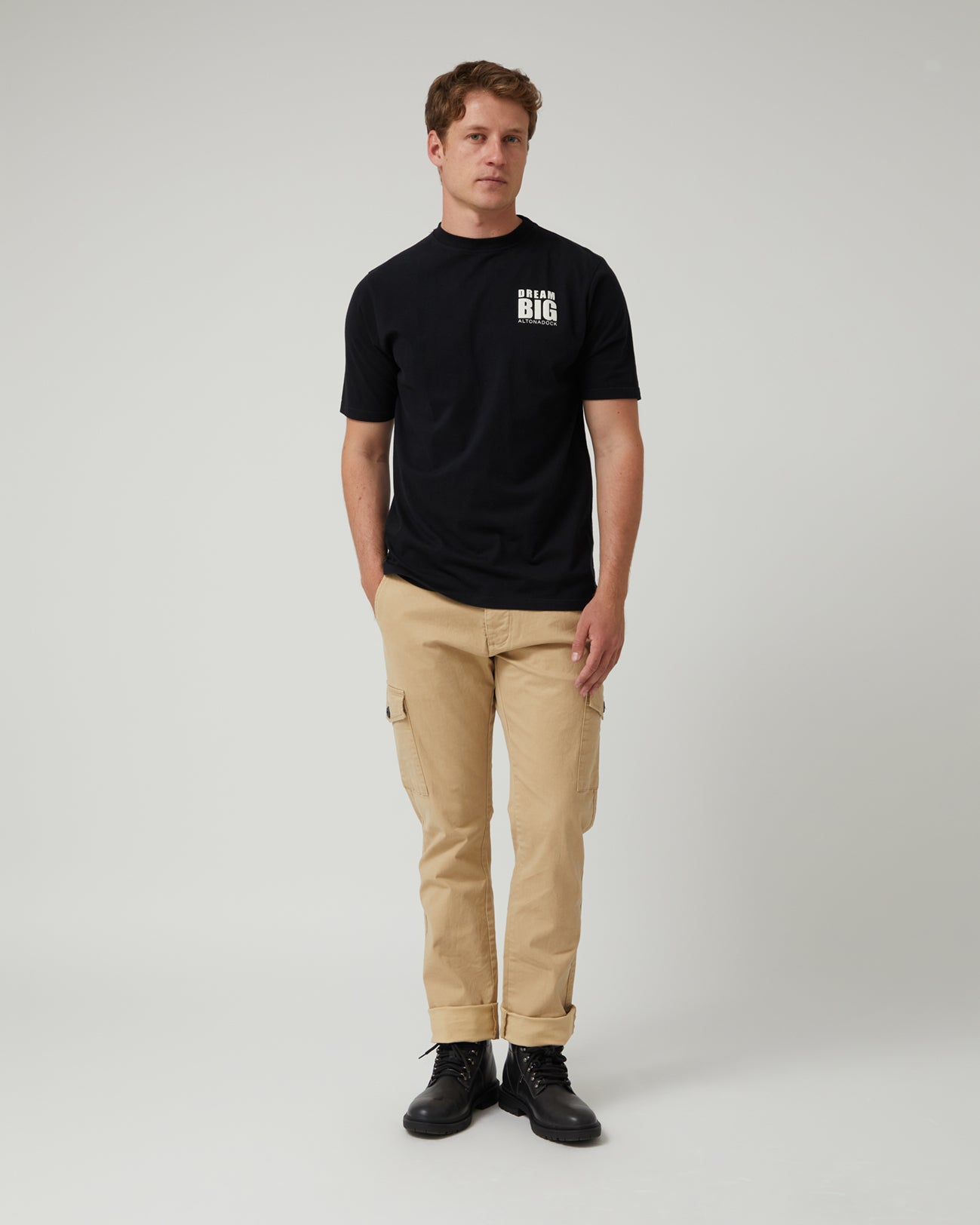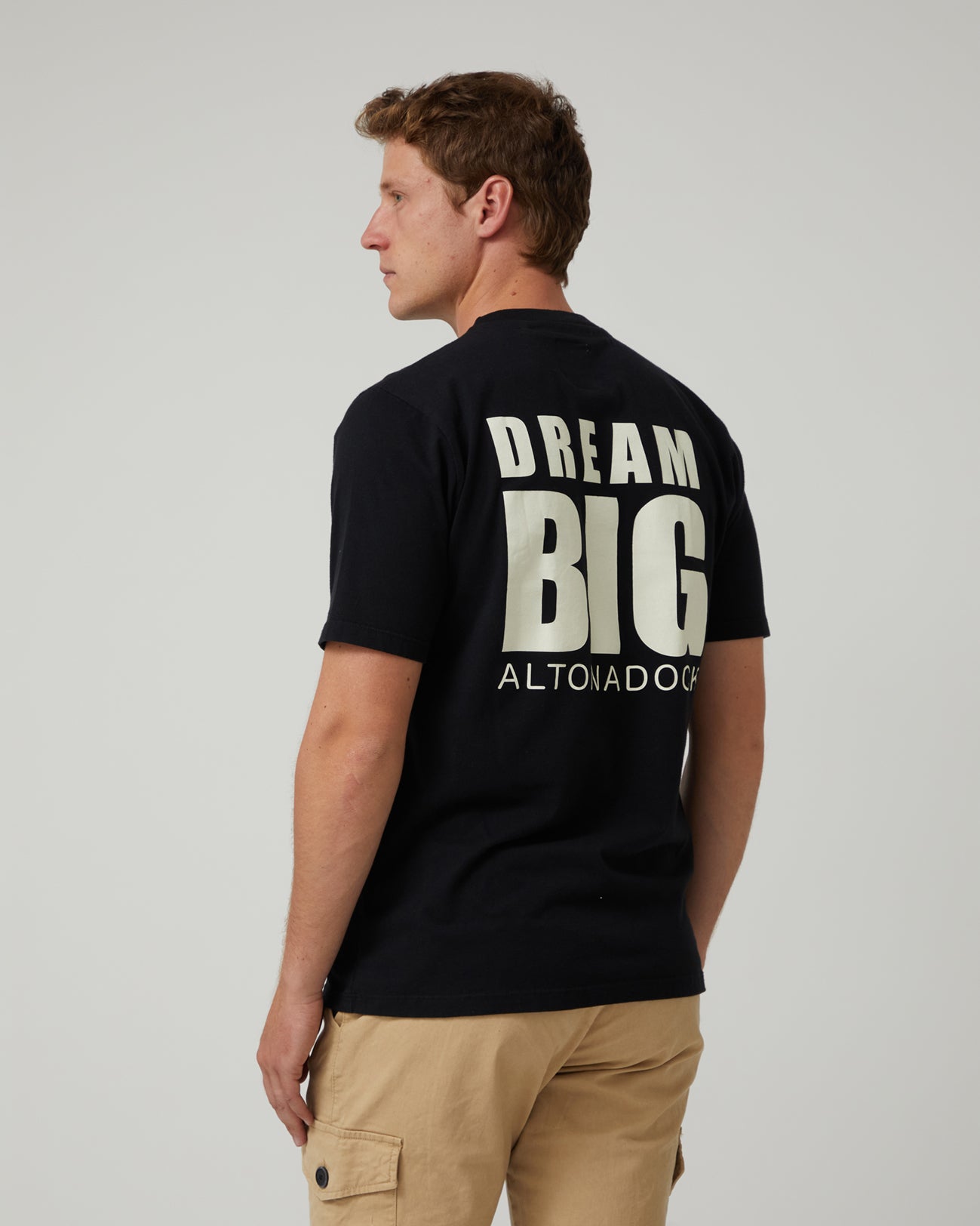 La Camiseta Dream Big Negra de Altonadock es una prenda que inspira actitud y confianza en cada detalle. Confeccionada en 100 % algodón, ofrece suavidad, comodidad y transpirabilidad para el día a día. Su diseño minimalista incorpora la serigrafía Dream Big en negro, creando un contraste elegante y moderno sobre la base cruda. Perfecta para looks casuales con personalidad, es una camiseta versátil que se adapta a cualquier ocasión.