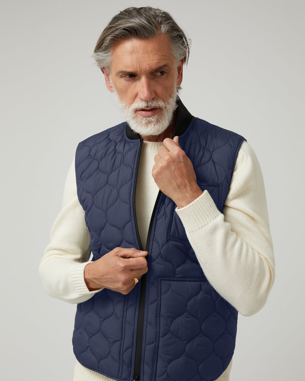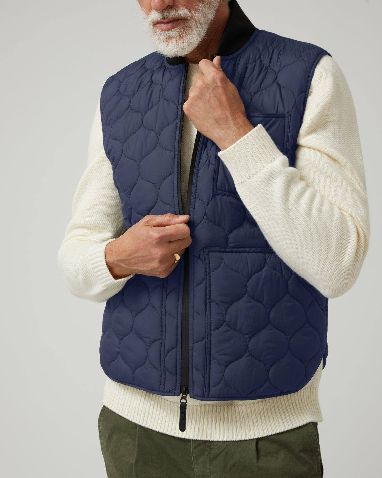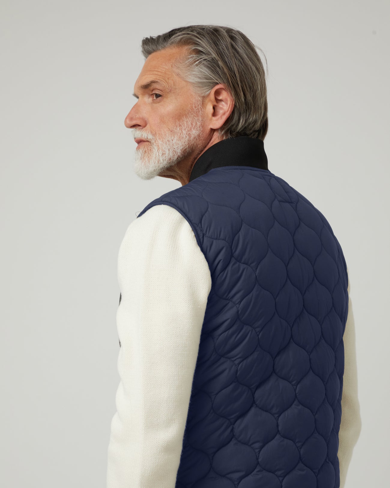 l Chaleco Nomad Azul Marino de Altonadock combina diseño contemporáneo, ligereza y funcionalidad en una prenda perfecta para el día a día. Su aislamiento térmico mantiene el calor sin añadir volumen, convirtiéndolo en la capa intermedia ideal o en una prenda exterior versátil. El acolchado con patrón geométrico aporta un estilo moderno y urbano, mientras que los bolsillos frontales y el cierre con cremallera garantizan practicidad. Perfecto para combinar con camisas, sudaderas o jerséis, es un básico funcional con un toque sofisticado.