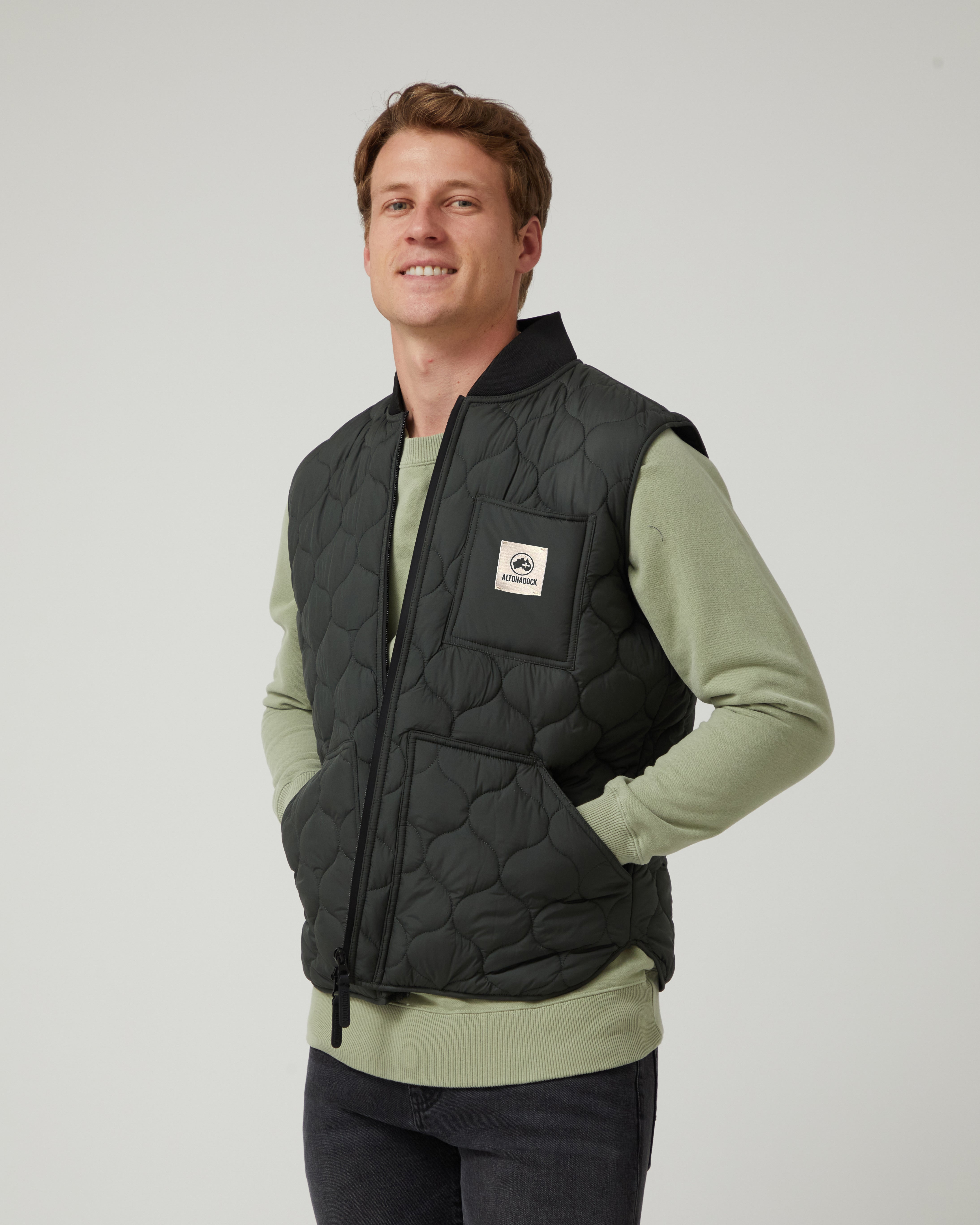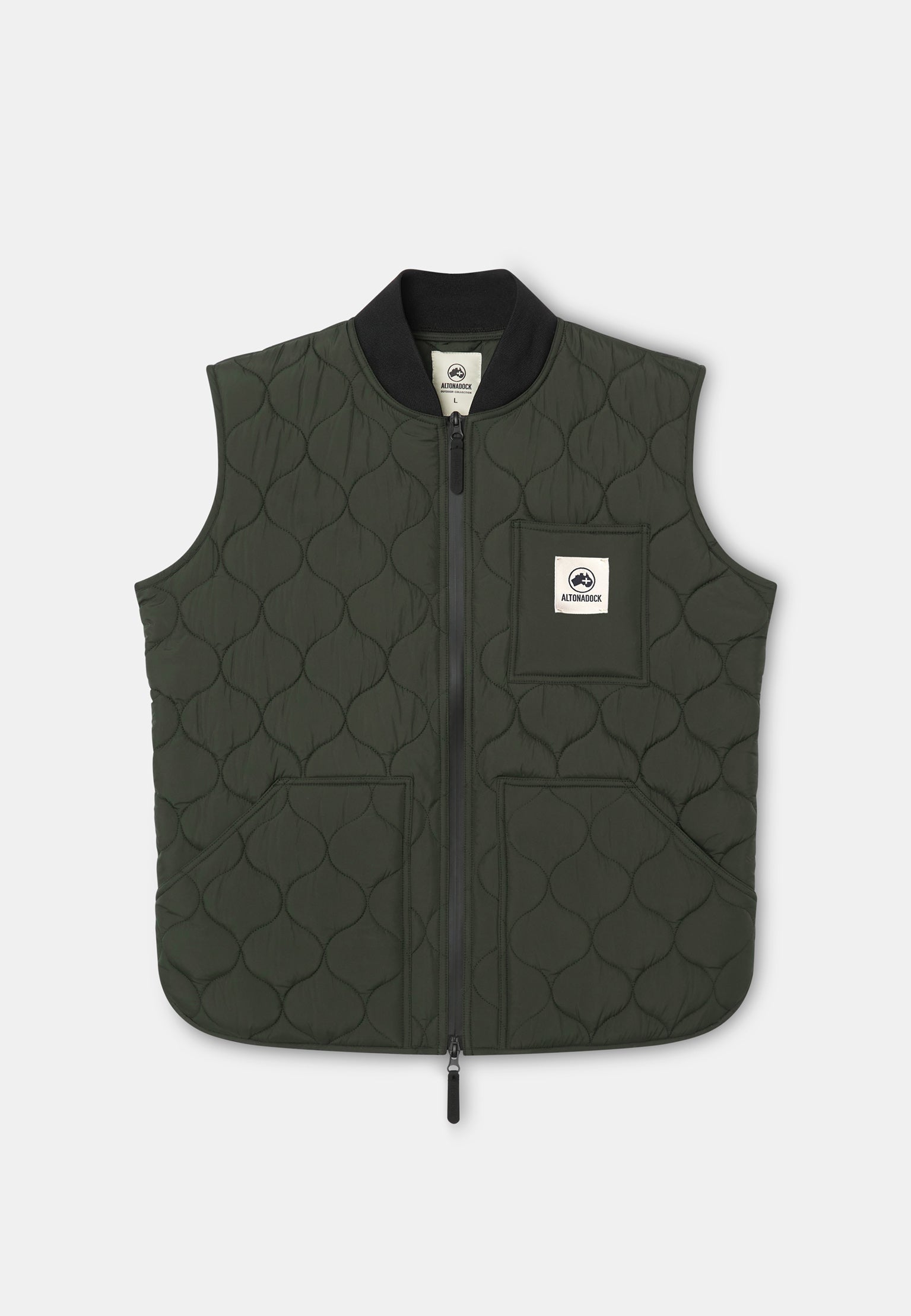 El Chaleco Nomad Verde Oscuro de Altonadock es la prenda perfecta para quienes buscan funcionalidad, estilo y ligereza en su día a día. Su diseño con aislamiento térmico retiene el calor corporal sin añadir volumen, convirtiéndolo en una capa intermedia ideal o en una prenda exterior versátil para el entretiempo. El acolchado con patrón geométrico aporta un toque contemporáneo, mientras que los bolsillos delanteros y el cierre con cremallera aseguran practicidad y comodidad. Su tono verde oscuro lo convierte en un básico fácil de combinar, ideal para looks urbanos o casuales.