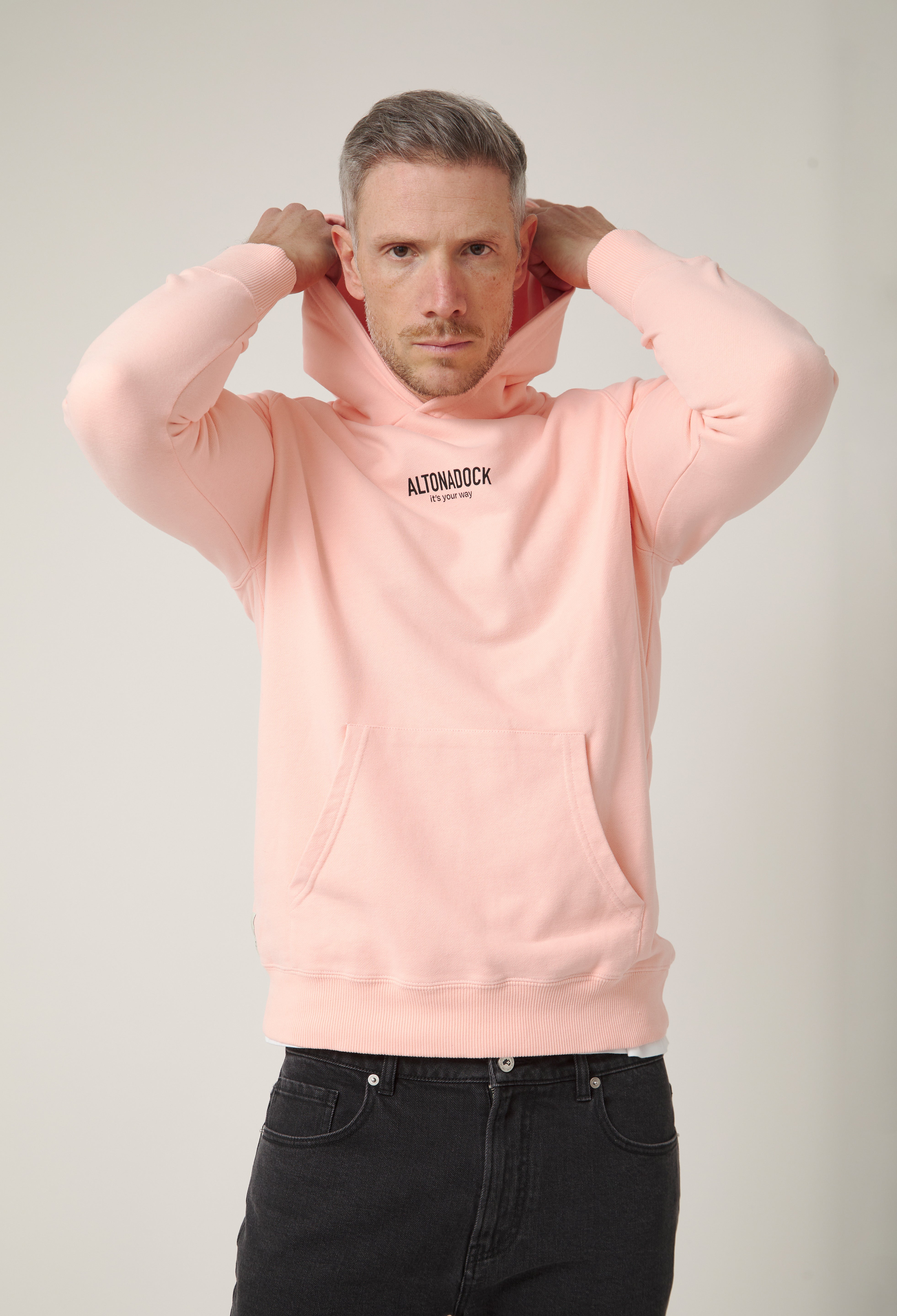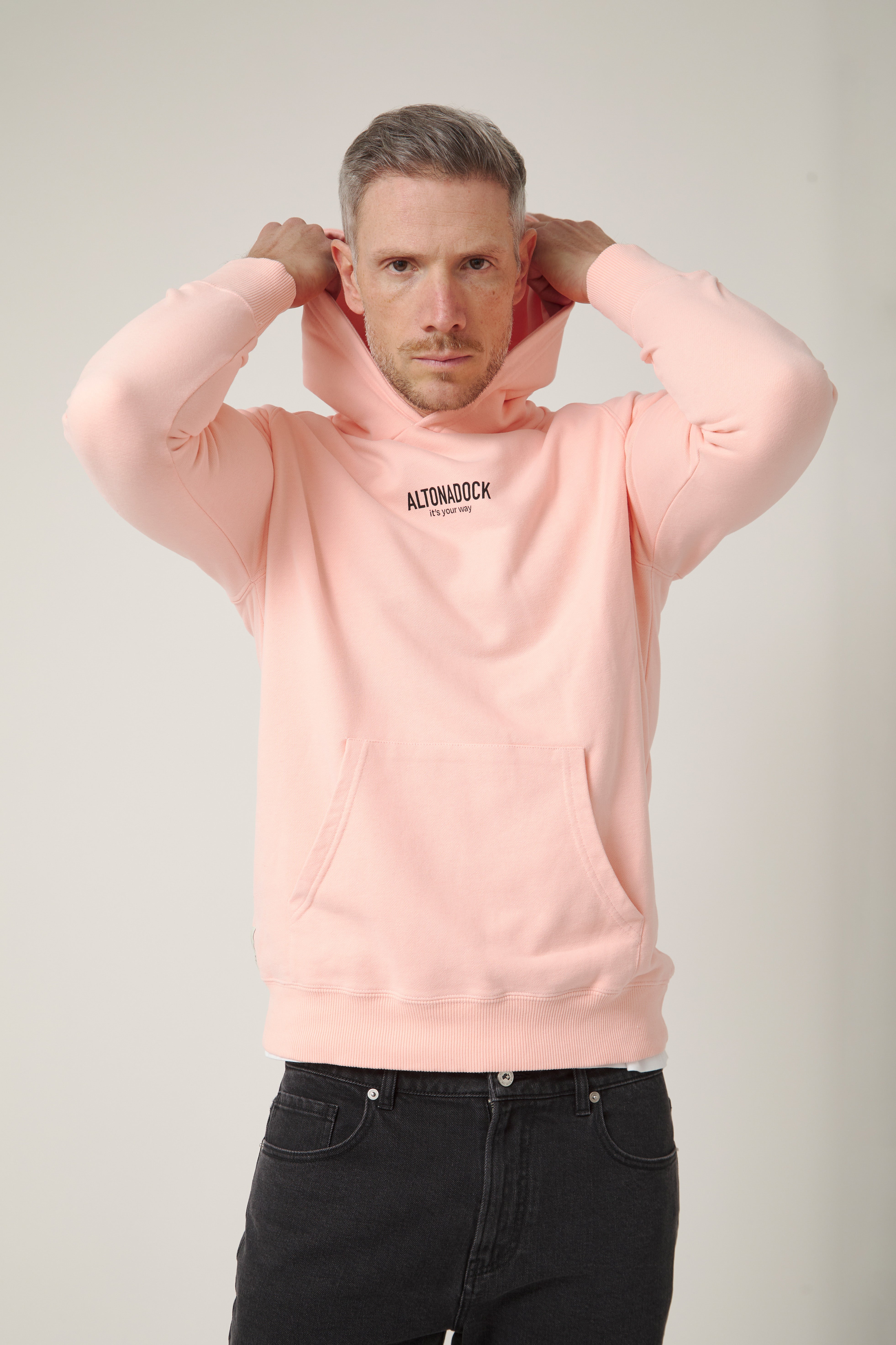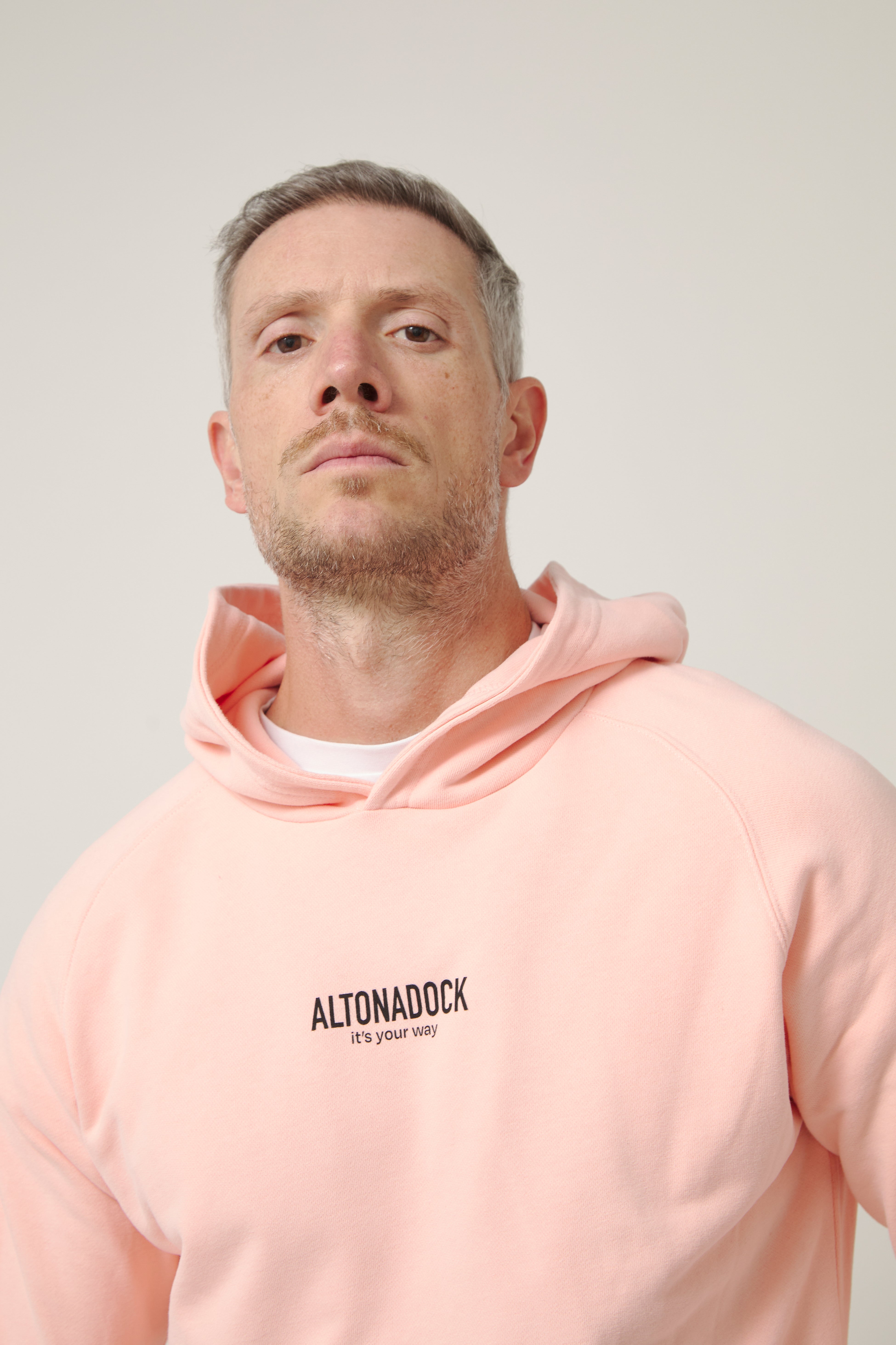 Sudadera con capucha en color rosa empolvado con detalle tipográfico “Altonadock, it’s your way” en el pecho, una prenda que transmite sencillez, actitud y libertad. Confeccionada en tejido de algodón de alta calidad, ofrece un tacto suave y una comodidad pensada para el uso diario. Su diseño limpio y minimalista se equilibra con un mensaje discreto pero significativo, aportando personalidad sin perder versatilidad. Una sudadera atemporal, perfecta para looks relajados y para acompañarte en cualquier plan.